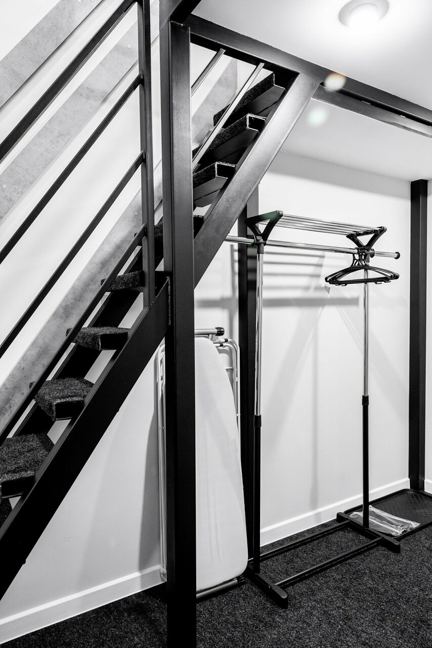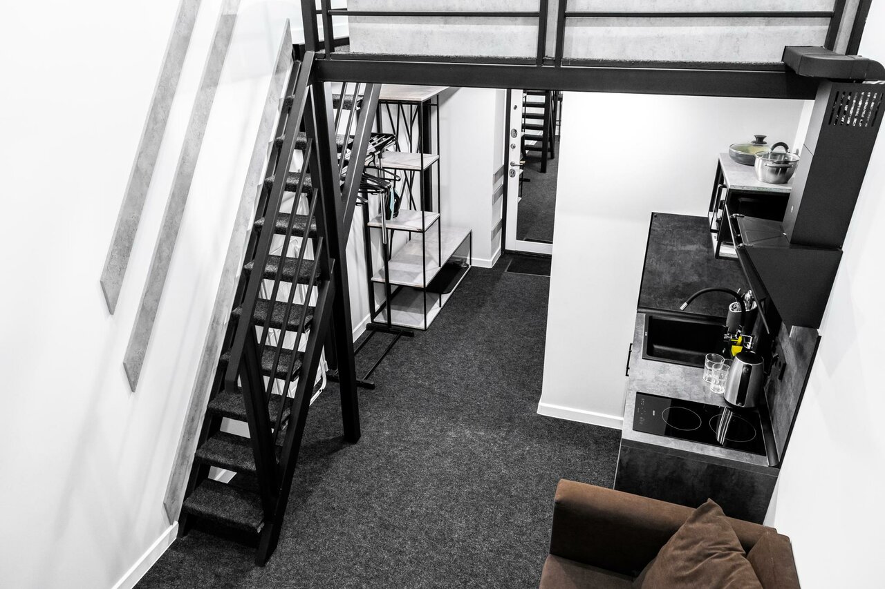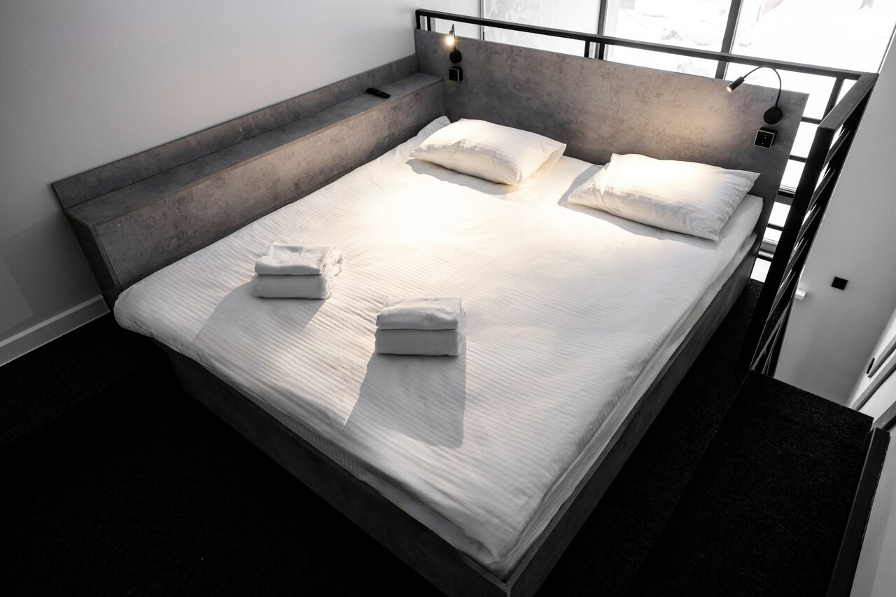 Классный отель! Очень интересное решение — двухуровневые номера! Внизу кухня- прихожая, туалет, душ, а наверху спальня. Уютно, чисто, тихо, удобно. Есть полки для вещей, плечики, гладильная доска, сушилка для вещей, микроволновка, чайник, холодильник, посуда. Нам с дочерью очень понравилось! Минимализм и комфорт!