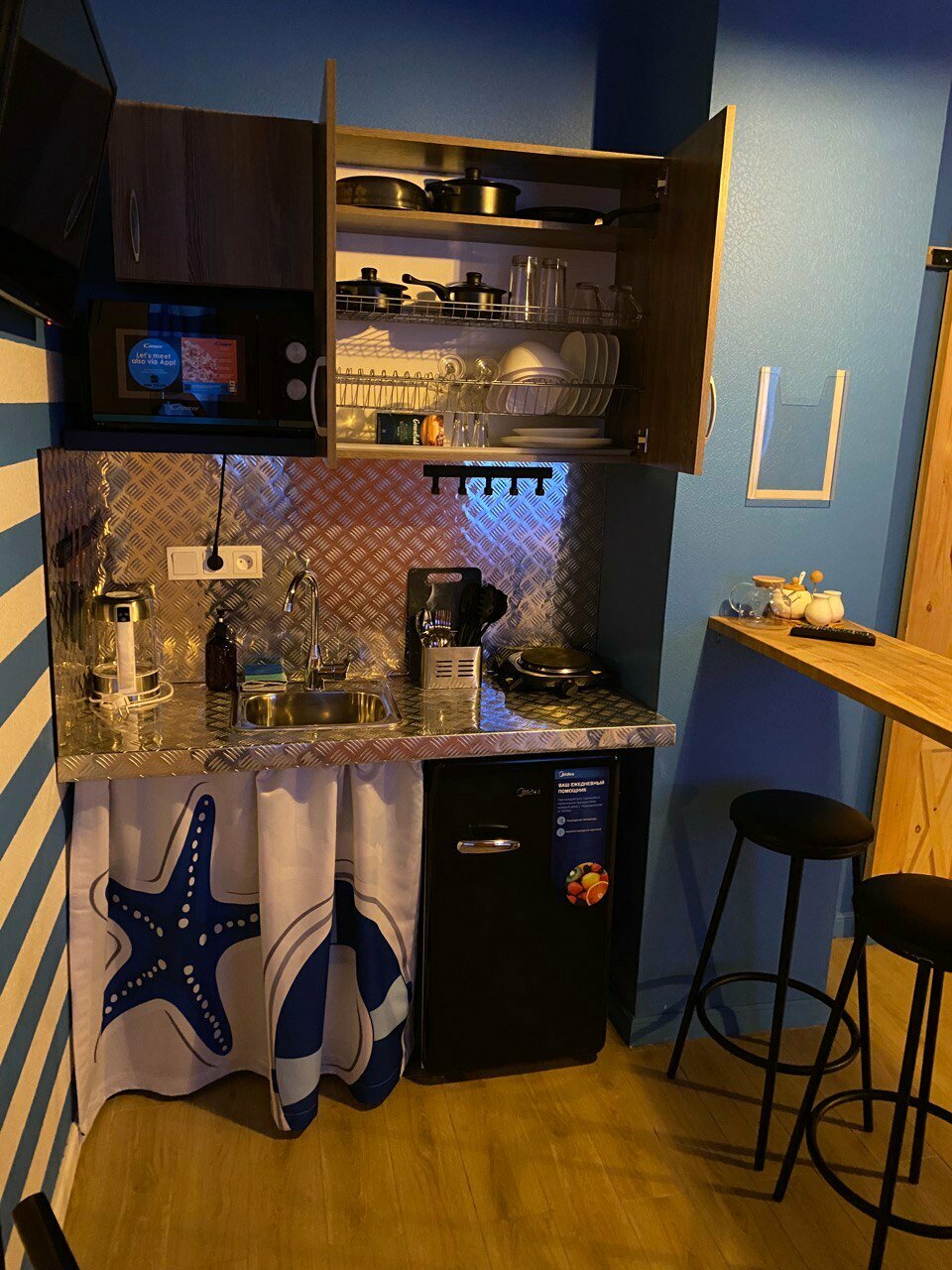 Гостиница новая, всё чистенькое, стильное. В номере есть кухонька с электроплитой и всем необходимым, можно приготовить полноценный ужин самим, нам с ребенком это пригодилось. Во дворе большая детская площадка. Красивый, продуманный номер, расположение удобное.