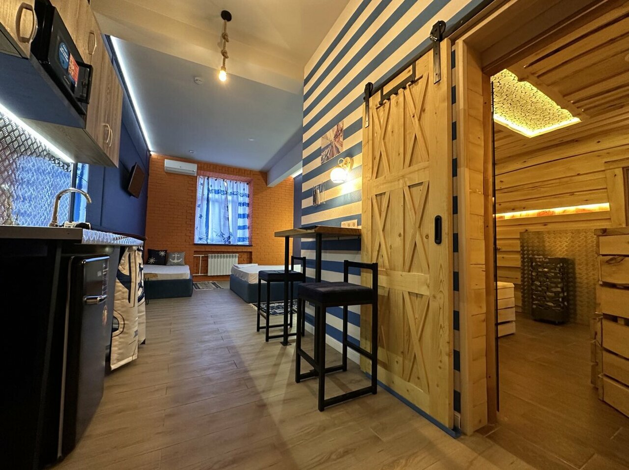 Шикарная студия, все новое, чистое, красивое, для ребеночка предусмотрена кроватка есть кухня, да еще и сауна . Посещаем уже не в первый раз , волшебный отель. Спасибо