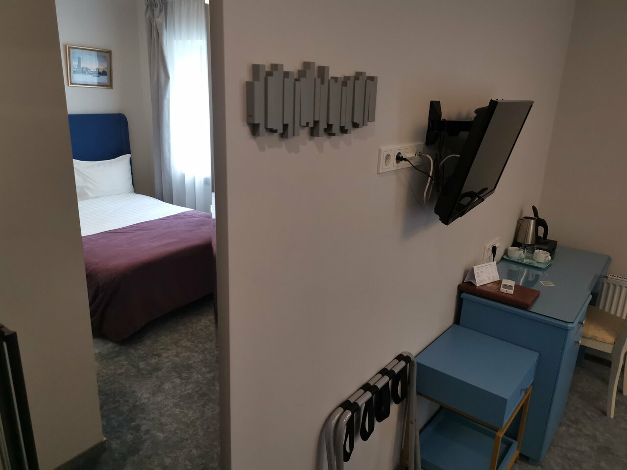 Расположение близко к центру города,номер чистый,обслуживание на уровне,персонал отзывчивый,все чисто,бемплатно дали несколько пакетиков чая и кофе,в номере есть чайник.