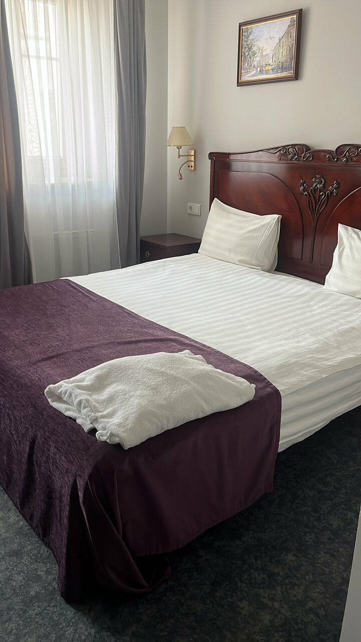 Отличный отель, расположен в центре города. Все достопримечательности, магазины, кафешки в шаговой доступности. Постельное белье чистое, душ и горячая вода в нем присутствует, а также мыльно-рыльные предметы в наличии. Что еще нужно от номера, в котором ты остановился переночевать.