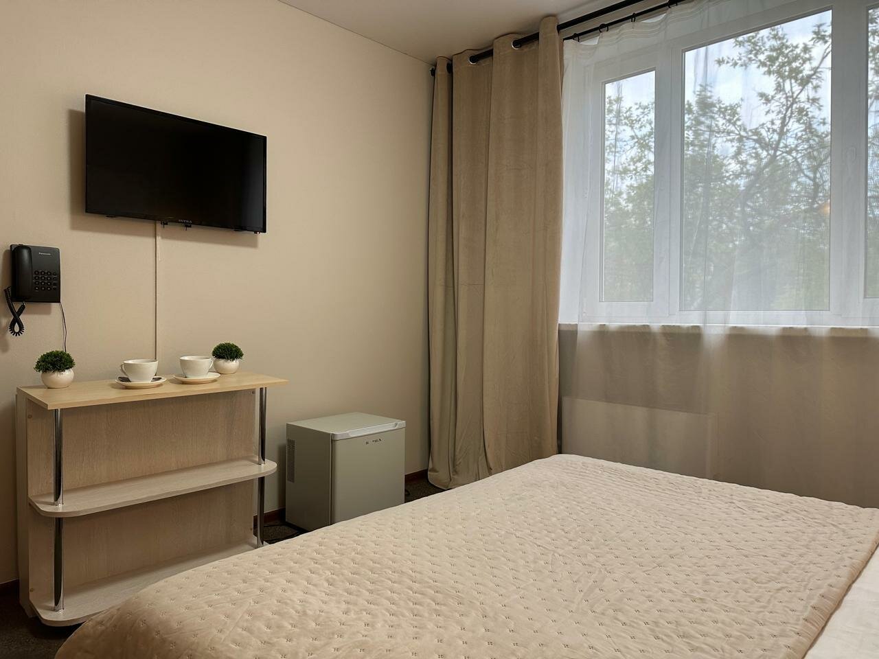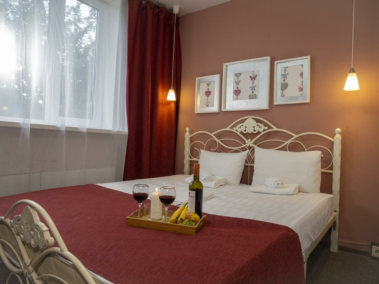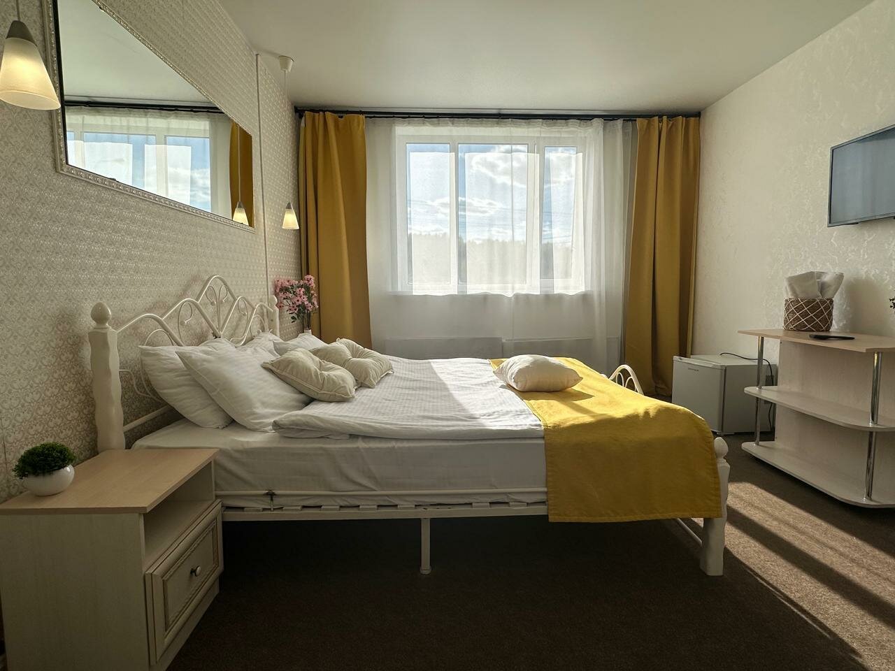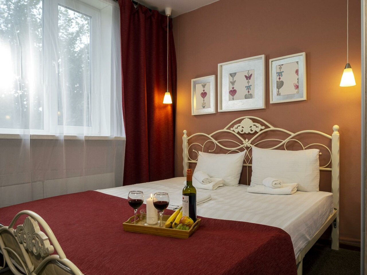 Фото представленные на сайте отеля далеки от действительности. Отель расположен на первом этаже жилого дома. С одной стороны окна выходят на лесполосу и гаражи, с другой стороны во двор дома. Две звезды ставлю только за то, что сон был комфортным (матрас хороший, белье и полотенца были чистыми), в остальном даже одной звезды не поставила бы. Завтраки приготовлены видимо администратором, кафе или ресторана нет, еду приносят прямо в номер и она ужасна. Поэтому, если вы после моего отзыва все же решились заселиться в данный отель, не берите завтраки. Что касается уборки номеров, то её там нет. Душевая кабина вся в известковом налете, унитаз грязный, в раковине засор, вода не уходит. Просто ужас!!!! Обои на стенах отходят, холодильник грязный. Администратор постоянно отсутствует на месте. Респект фотографу, который сделал отелю такие красивые фото. Сравните реальные фото номера и завтрака, такое вас ждёт в реалиях. Не рекомендую данный отель.