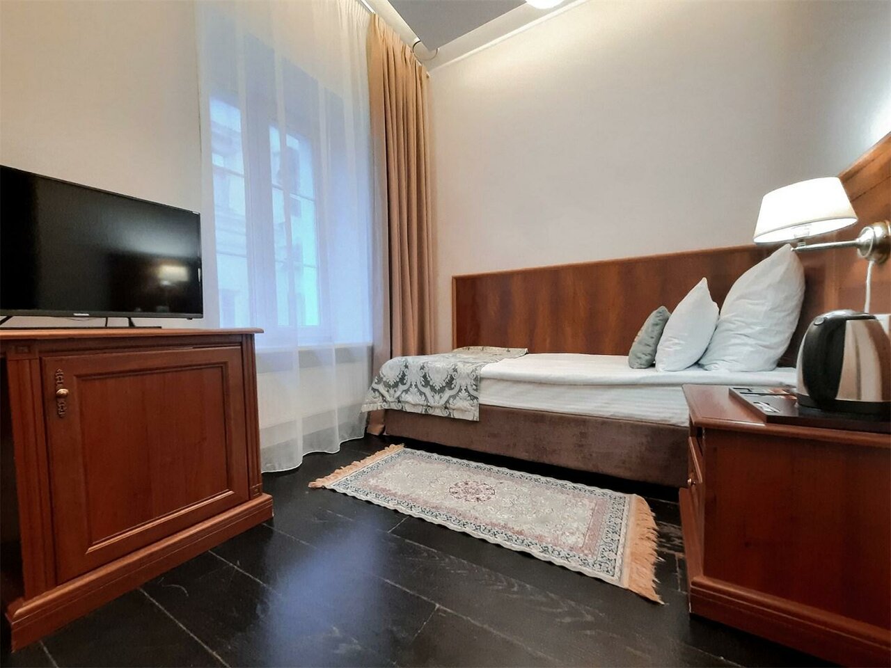 Был в этом отеле в номере #15. Настоящий мрак и ужас в центре Москвы. Маленький, мрачный, холодный и очень не уютный номер. Свет включается сразу и везде, ночного при кроватного света нет. Горячей воды в течении 15 мин. так и не’дождадись’. Телевизор стоит просто подпертый к стенке на комоде, не равён час готов свалиться. Сложилось такое впечатление, что номер сделан из бывшего чулан для хоз. инвентаря. Короче через 30мин мы из него съехали, простив отелю и завтрак и испорченное настроение! Очень — очень жаль, что название никак не соответствует содержанию. Не рекомендую!!!