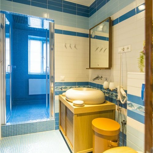 Маленький отельчик с очень удобным расположением! Были проблемы с интернетом, он пропадал. Телевизор мы так и не смогли посмотреть, сигнала не было все 3 дня. В ванной старая сантехника, в душе нет полочки под шампуни. В номере нет холодильника.