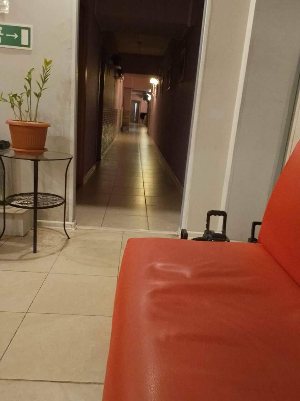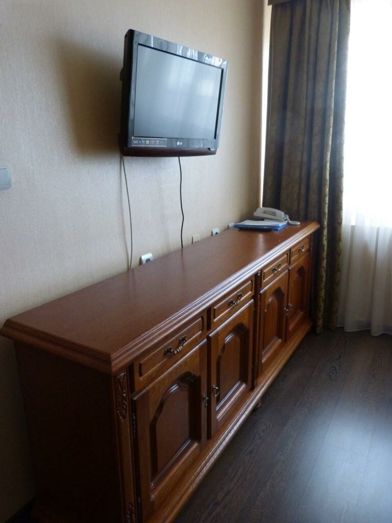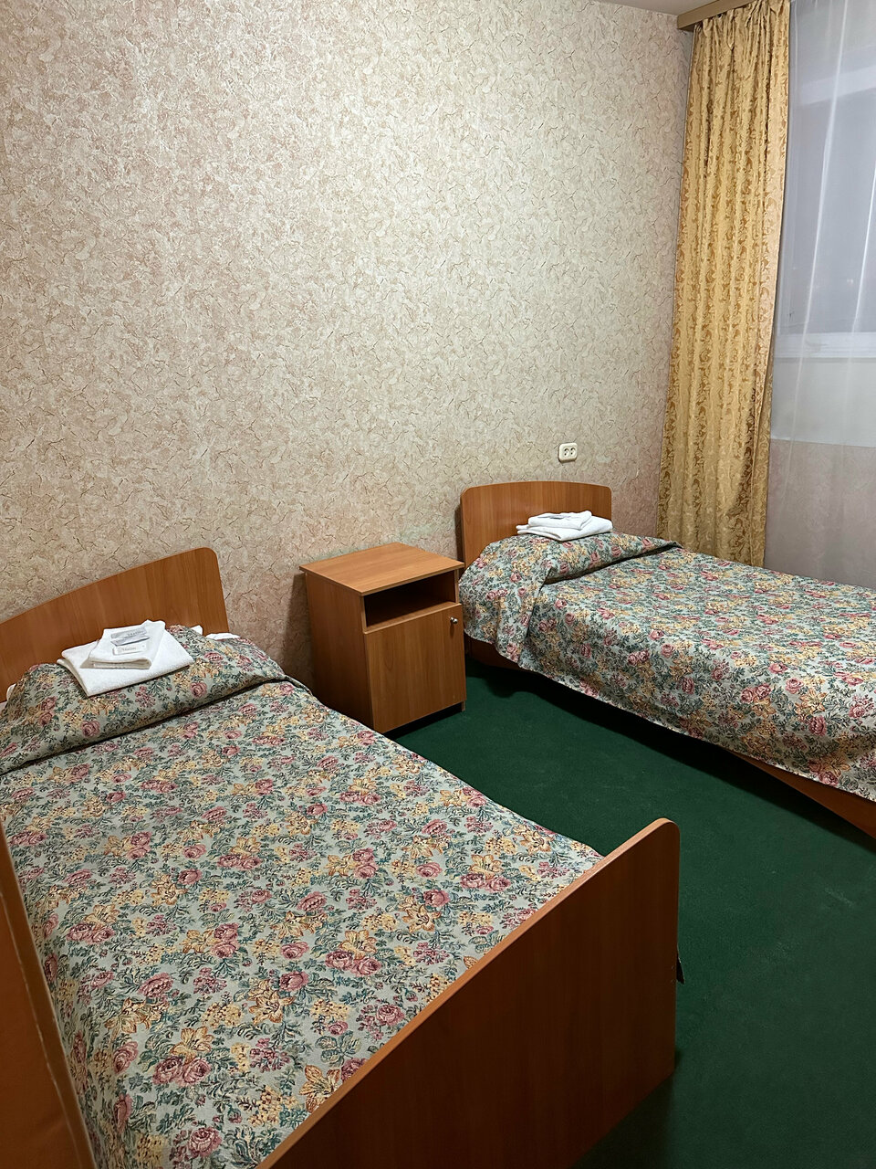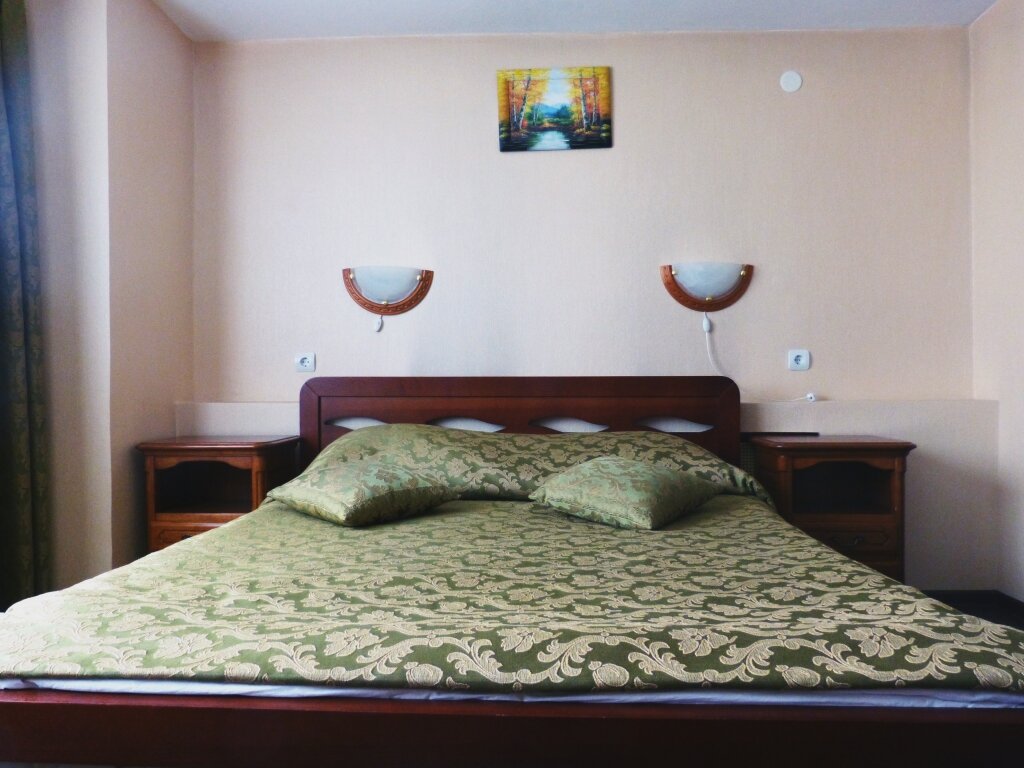 Гостиница не понравилась! В номере холодно. Холодильник вонючий Мебель и шторы старые. Телевизор нормальный. На кровати спать очень не удобно, а ещё она очень маленькая. Еле заснула. В туалет зайти нельзя, смыв непонятный. То-ли его крутить, то-ли нажимать на него надо — не разобралась. Бумаги повесили много, хотя она на столько тонкая, что когда я её разматывала, сквозь неё могла видеть свою руку. Свет тусклый как в туалете, так и в душе. Также в душе зеркало грязное. Над ним лампочка светит тускло-зелёным светом. Вода в кране рыжая. На завтрак у нас был шведский стол. Скажу так — я ожидала большего. Лежали в ряд оладьи, омлет, запеканка, нарезка сыра и ветчины, сметана, яблочный джем и два вида каши. Также чай и кофе. Кипяток у них не вкусный. Омлет и оладьи, которые я пробовала были холодными, хотя пришли мы рано. Оладьи и батон были не свежими.