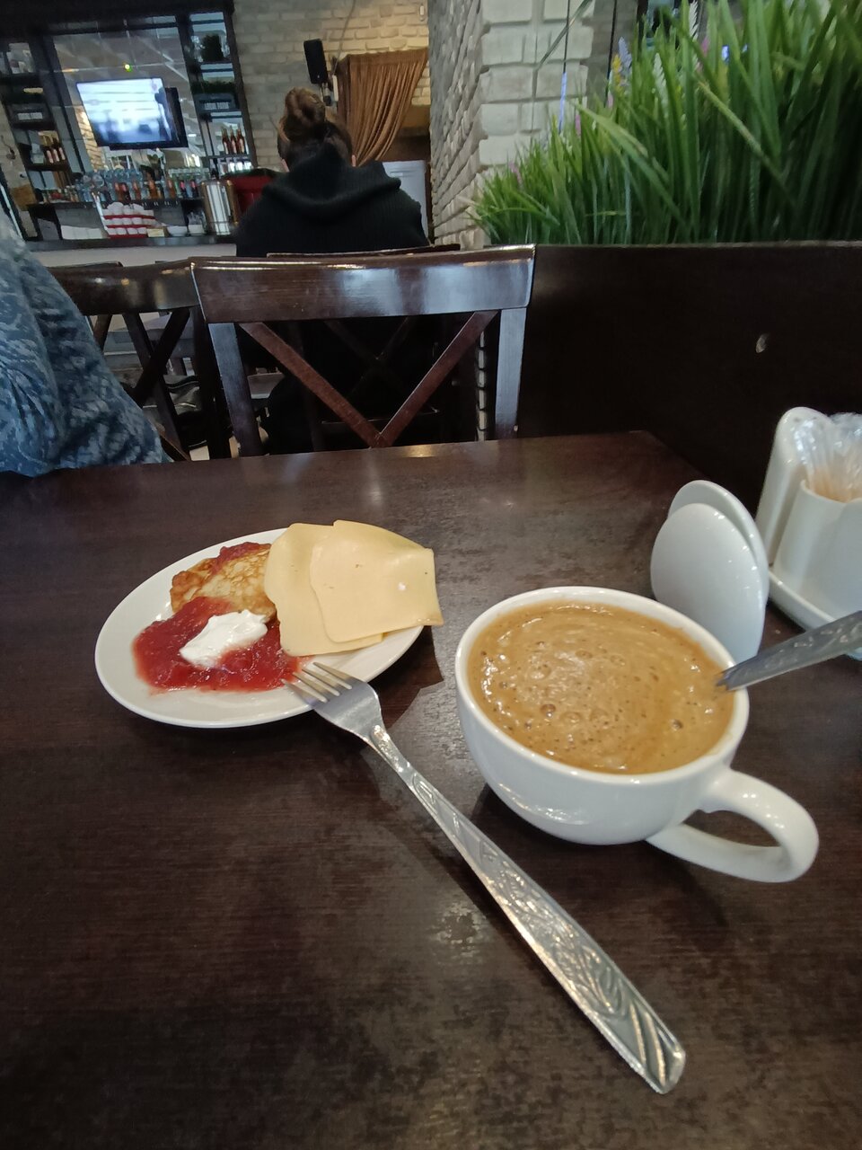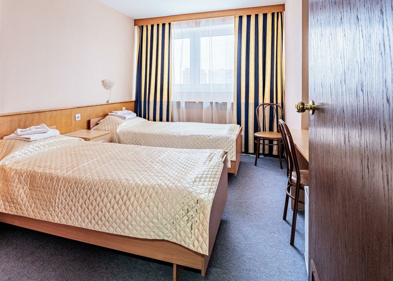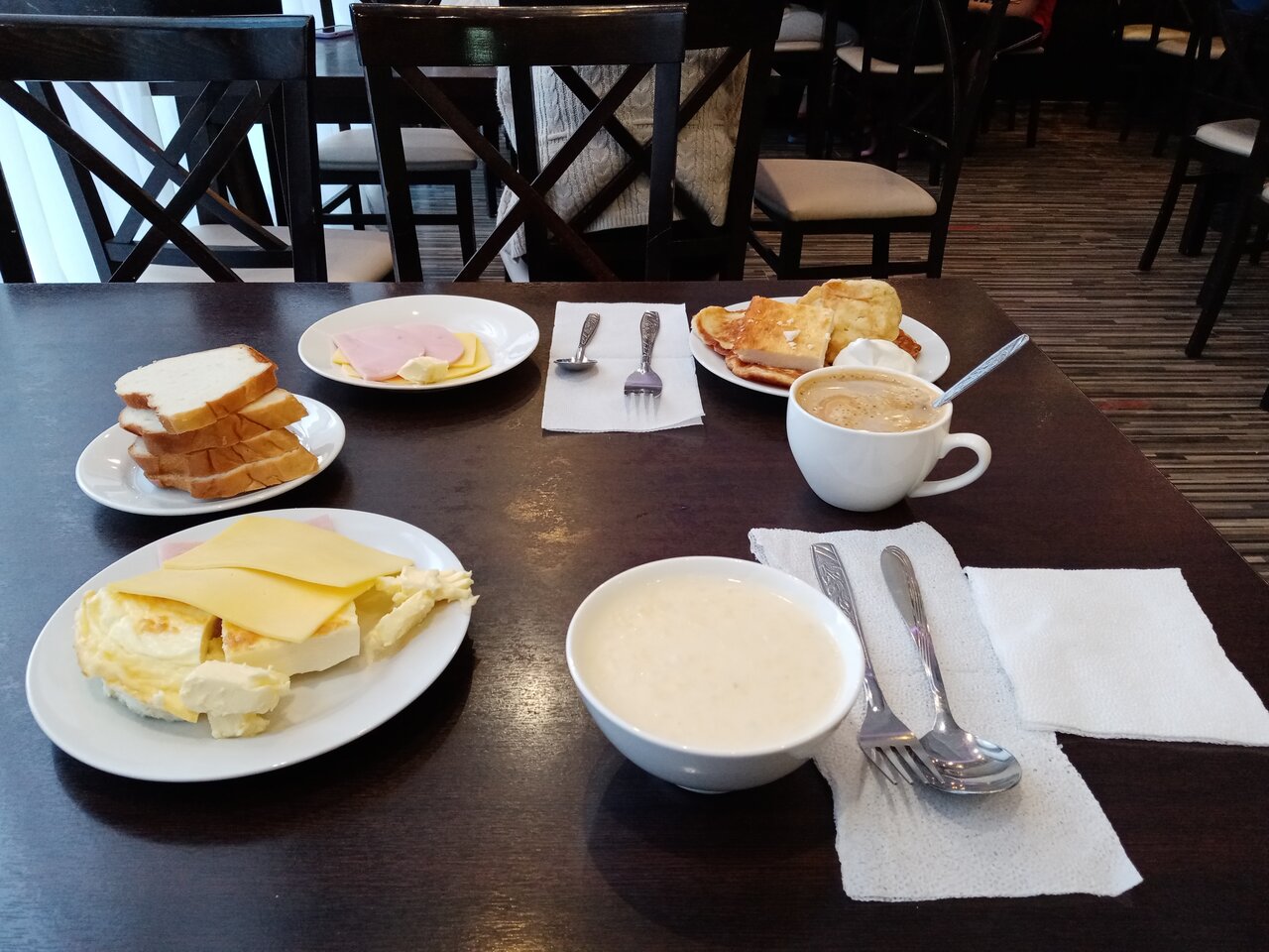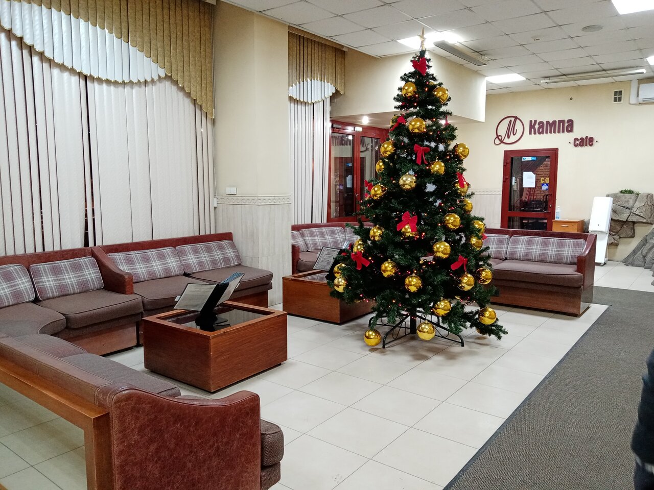 Гостиница не понравилась! В номере холодно. Холодильник вонючий Мебель и шторы старые. Телевизор нормальный. На кровати спать очень не удобно, а ещё она очень маленькая. Еле заснула. В туалет зайти нельзя, смыв непонятный. То-ли его крутить, то-ли нажимать на него надо — не разобралась. Бумаги повесили много, хотя она на столько тонкая, что когда я её разматывала, сквозь неё могла видеть свою руку. Свет тусклый как в туалете, так и в душе. Также в душе зеркало грязное. Над ним лампочка светит тускло-зелёным светом. Вода в кране рыжая. На завтрак у нас был шведский стол. Скажу так — я ожидала большего. Лежали в ряд оладьи, омлет, запеканка, нарезка сыра и ветчины, сметана, яблочный джем и два вида каши. Также чай и кофе. Кипяток у них не вкусный. Омлет и оладьи, которые я пробовала были холодными, хотя пришли мы рано. Оладьи и батон были не свежими.