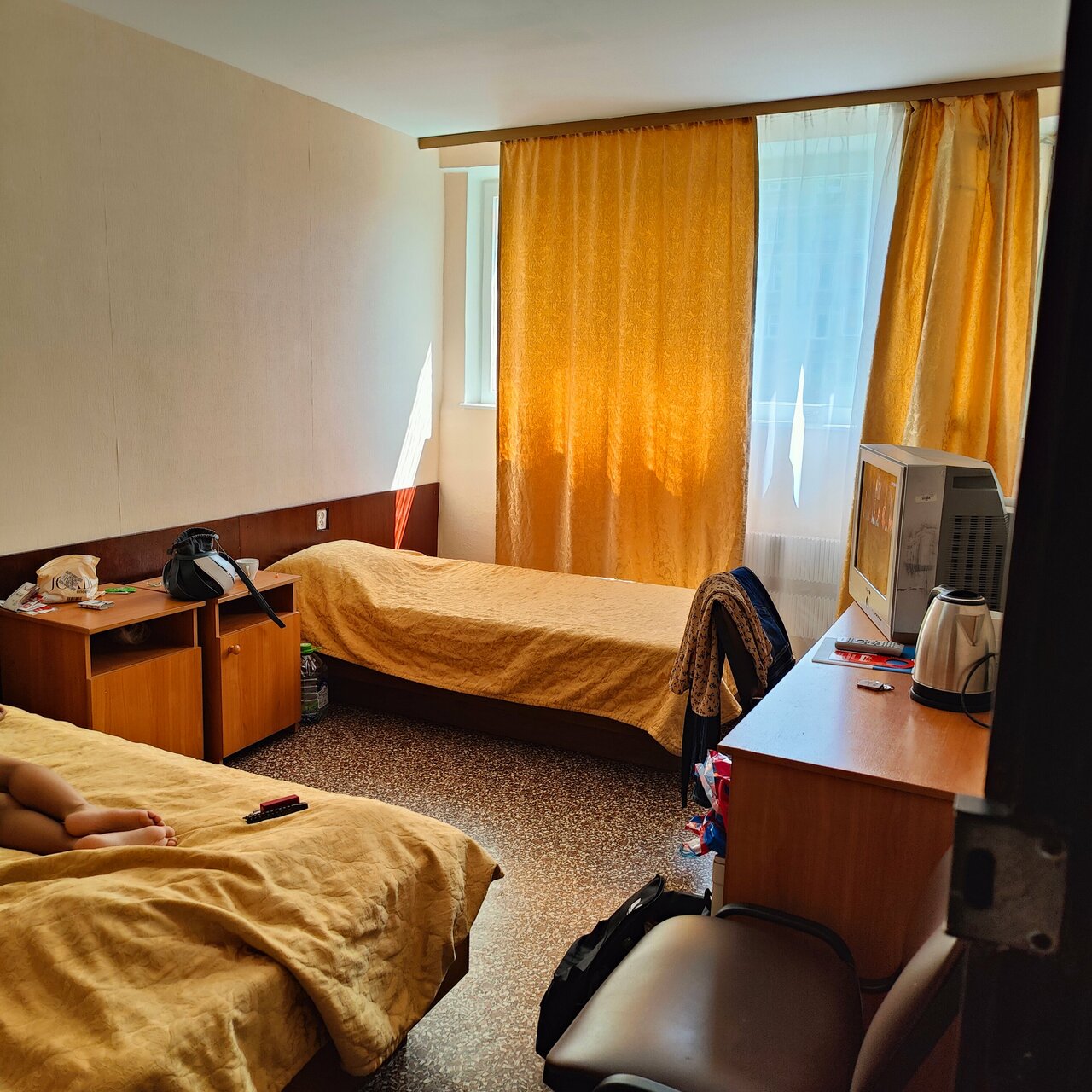 Были в гостинице совсем не давно, номер в блоках, один туалет на весь блок, номер не ремонтировали со времён 80-ых годов, электричество работает с перебойнами, также сверху могут затопить