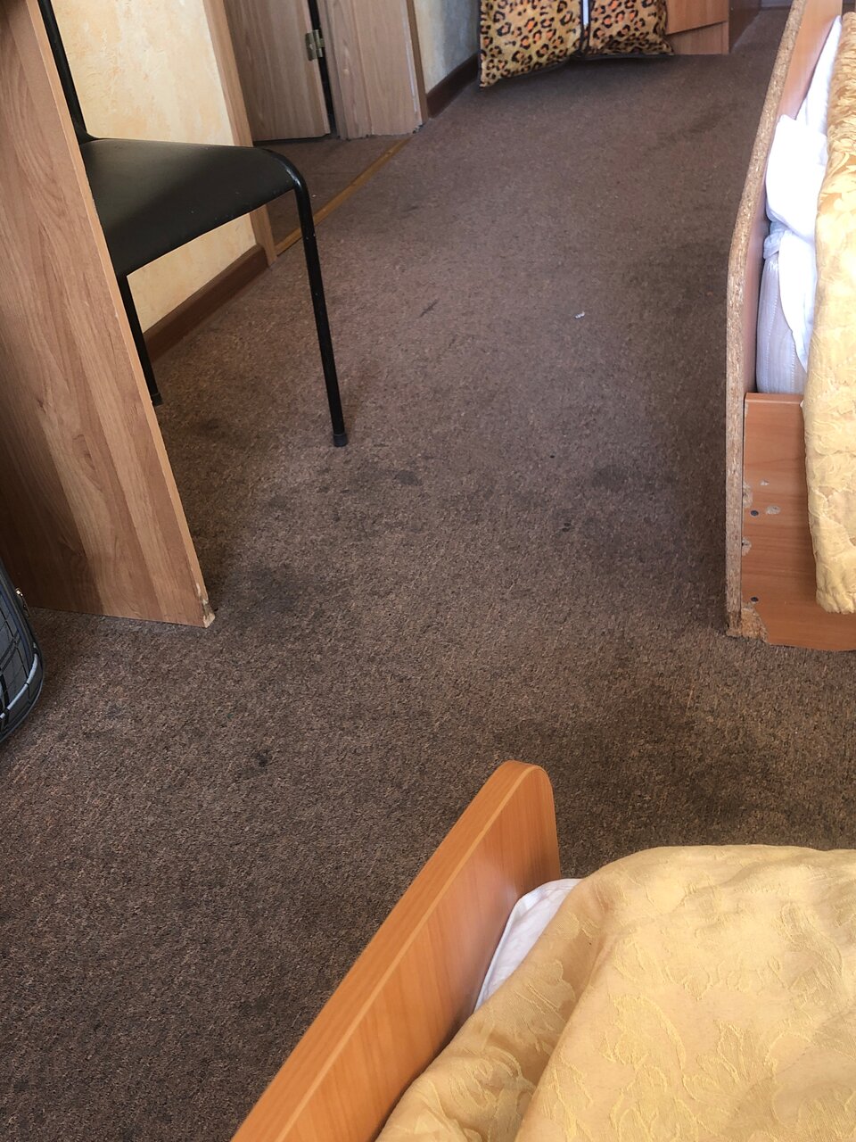 - Грязные, обшарпанные номера (пятна на обоях, неровные полы, старые обои).