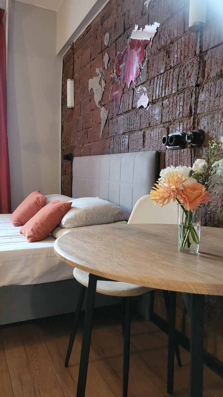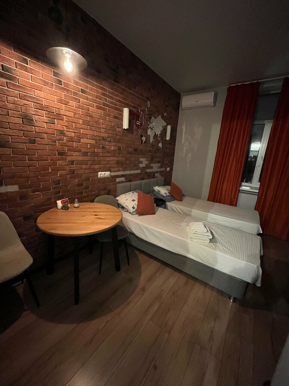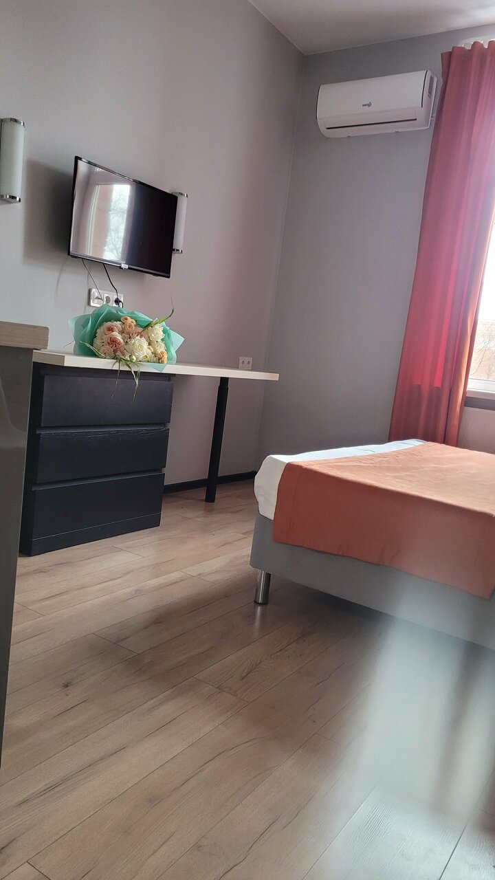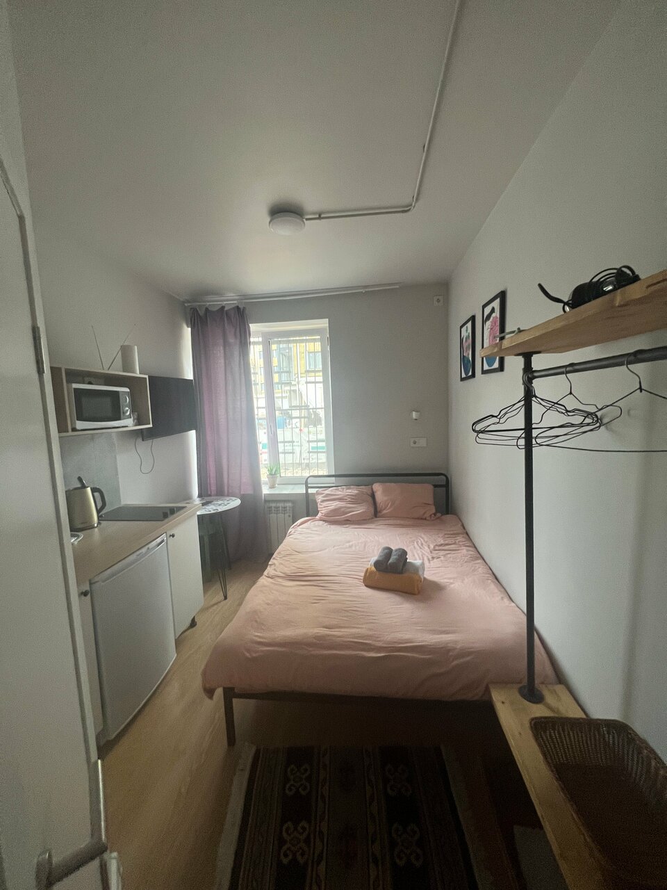 Уютный, чистый номер. В номере есть посуда, плита если захочется приготовить поесть. Рядом столовая, магнит. Метро прямо за углом, очень удобно. Единственный минус в номере нет фена (для девочек очень важно) и очень слабо работает вай-фай