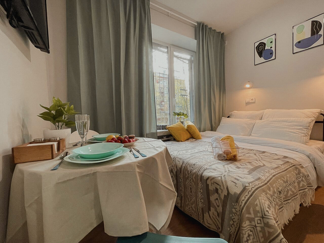 Уютные студии с собственной кухней и душем в апарт-отеле Metro Plus. ЗАСЕЛЕНИЕ ДИСТАНЦИОННОЕ. КЕЙ-БОКСЫ. ТОЛЬКО БЕЗНАЛИЧНЫЙ РАСЧЁТ. ИМЕЕТСЯ ЗАЛОГ