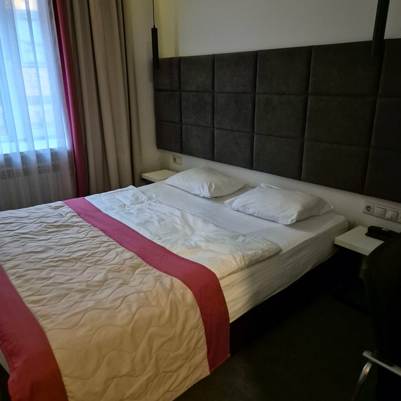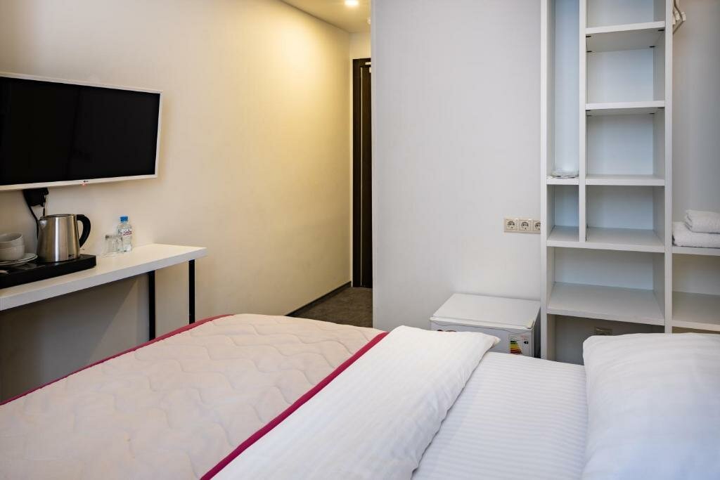 Чистый уютный номер с кондиционером, сейфом и холодильником. Имеется гель и шампунь для душа. Уборка приходила каждый день. Удобная кровать. Приветливый персонал — готовый помочь. Есть свой ресторан, завтраки, ужины за доп плату в полне себе приличные Расположение очень удачное, до Белорусского вокзала и ст. метро Белорусская мин 10 — 15 пешком. Из минусов: — сыро в номере, полотенца практически не высыхали (не хватает немного вентиляции в ванной и сушилки). - Не понятное ценообразование (некий повышенный спрос в большой заезд). Было очень не понятно услышать на 3 сутки прибывания при продлении жилья, что за 4 и 5 день придётся заплатить дороже. Вопрос — почему об этом не говорят при звезде?! Заселились бы мы во 2й раз сюда? Однозначно да! Плюсов куда больше, чем минусов.