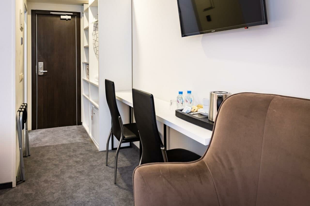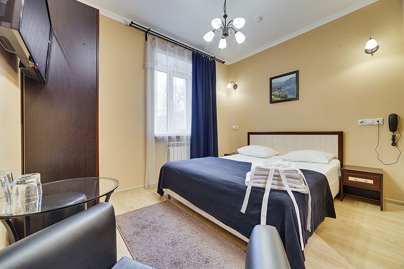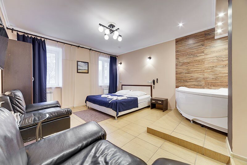 Дополнительные удобства: фен, халаты, тапочки, утюг, сейф, уборка. Отель подходит для краткосрочного проживания (включая почасовую аренду). Дата реконструкции — 2019 год.