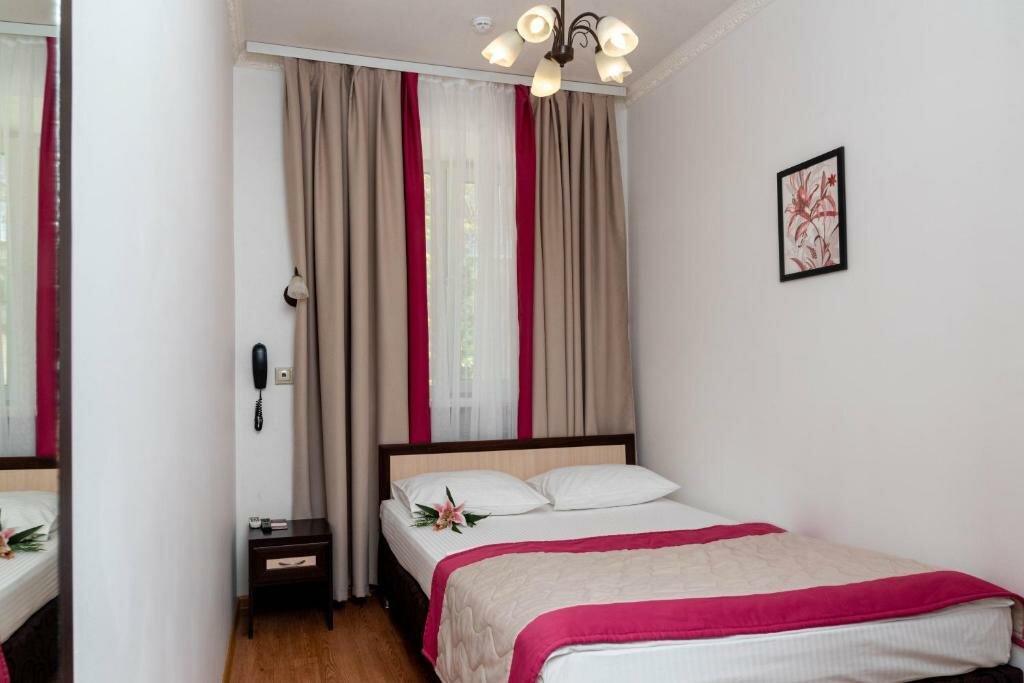 Находится недалеко от метро и вокзала. Жил в номере 15. Номер маленький, даже шкафа для вещей нет. Санузел крошечный, минираковина находится в душевой. Вся обстановка уставшая. Может в более дорогих номерах обстановка получше. Но ресторан очень понравился. Вкусные завтраки и ужины