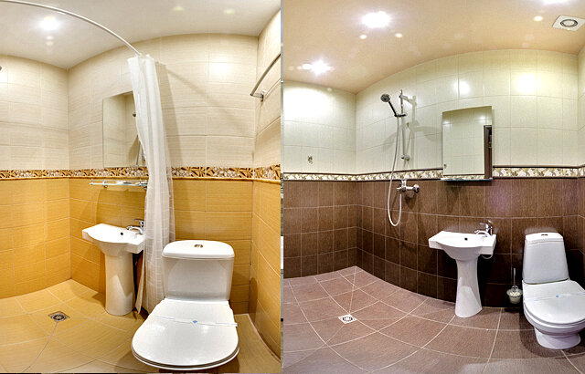 - Крошечный санузел (душ, раковина и унитаз в одном помещении).