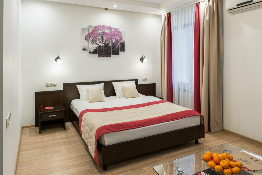 Гостиница располагает современными номерами с кондиционером, Wi-Fi, телевизором, холодильником, чайником и санузлом. Доступны услуги: ресторан, бар, кафе, завтрак (по меню), полупансион, прачечная, камера хранения и круглосуточная стойка регистрации.