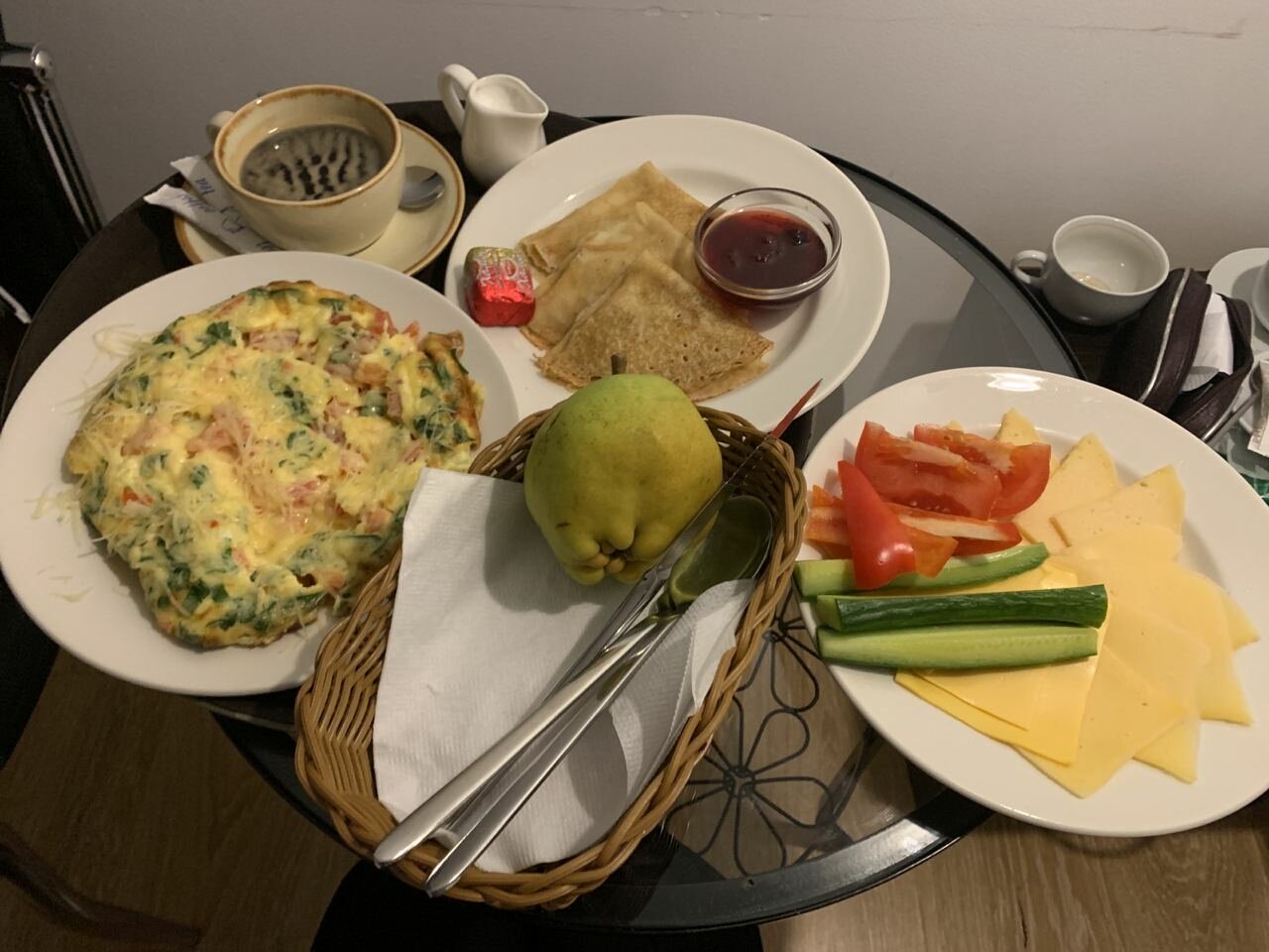 Остановились в этом месте, т. к недалеко Белорусский вокзал. Завтрак — шведский стол, входит в стоимость. Время завтрака приятно порадовало, с 7 — 11 утра. Номер небольшой, но нам больше и не надо было. Персонал приветливый.