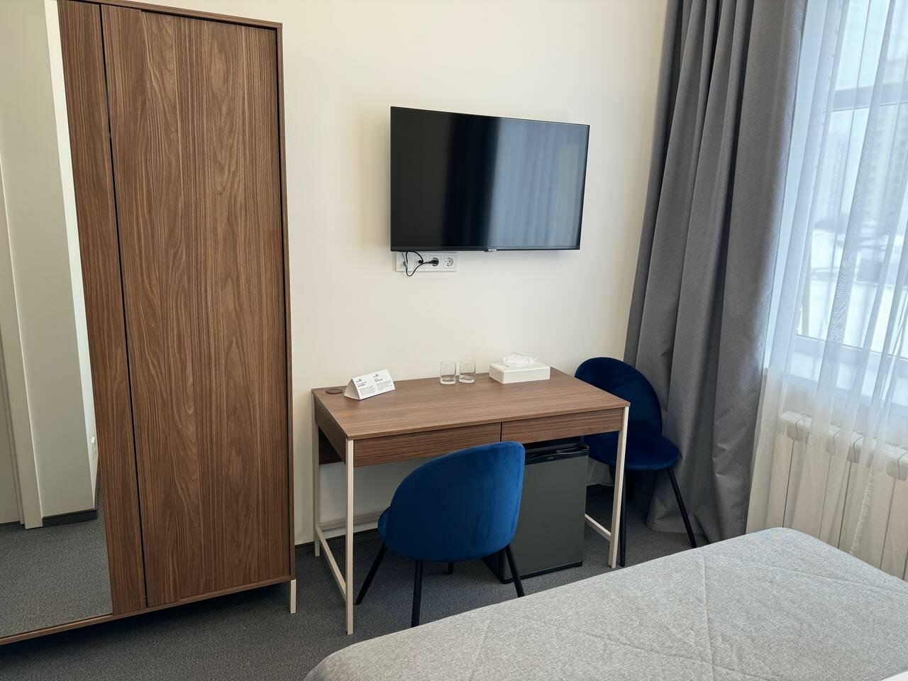 Хороший отель! Цены приемлемые, в номерах чисто, завтрак два варианта на выбор. Приветливый и отзывчивый персонал. Минус это если номер во втором крыле, пешком на 5 этаж тяжко подниматься.