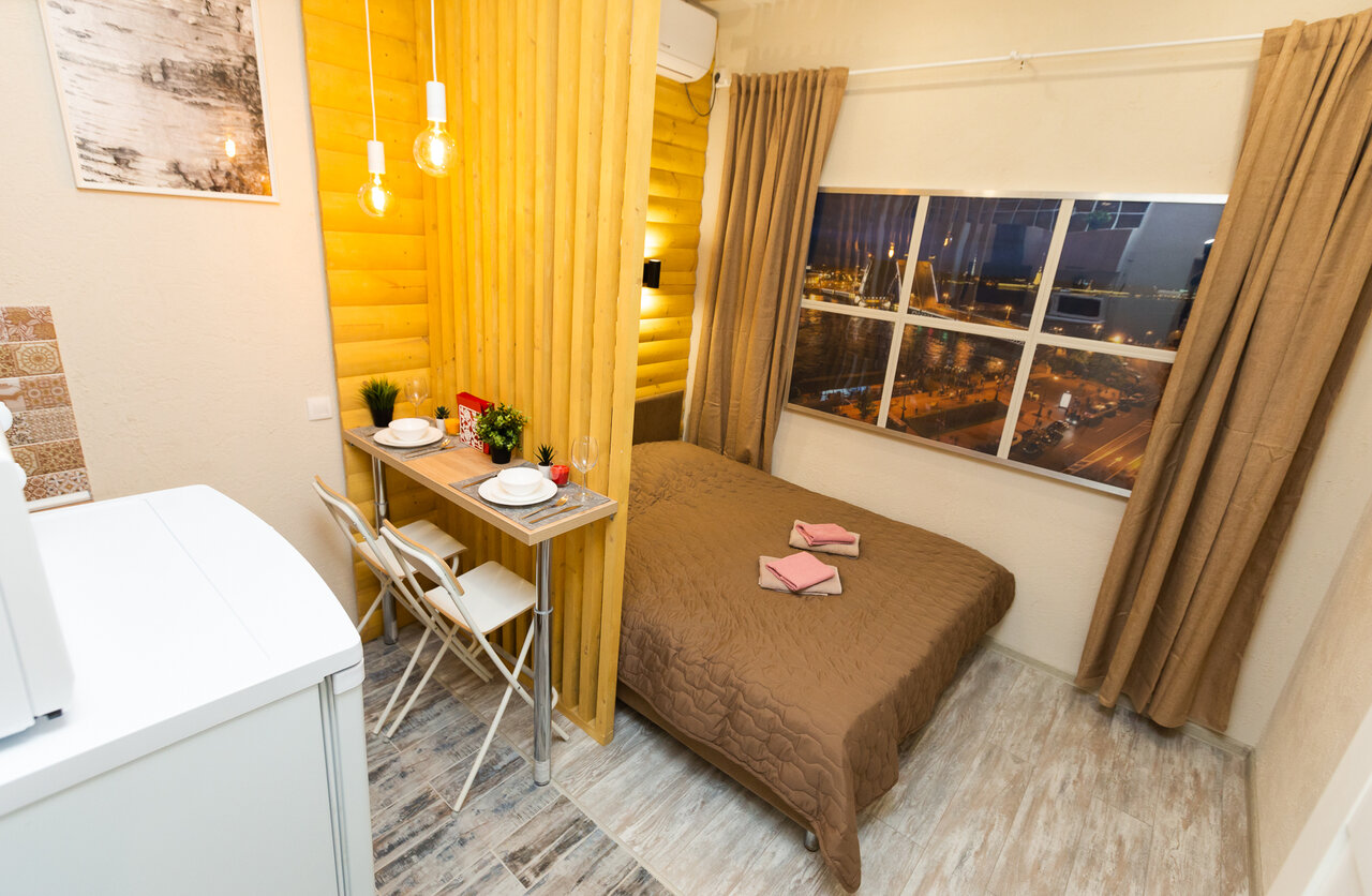 Отличная квартира за свою цену! В квартире чисто, есть все необходимое, что, кстати, редко встречается. В ванной средства личной гигиены: одноразовые зубные щетки, гель для душа, мыло, одноразовые тапочки, также есть фен, утюг, вся необходимая посуда, микроволновка. Залог вернули, все хорошо. Единственный минус — связь с клиентом, отвечают очень долго либо вообще не отвечают.