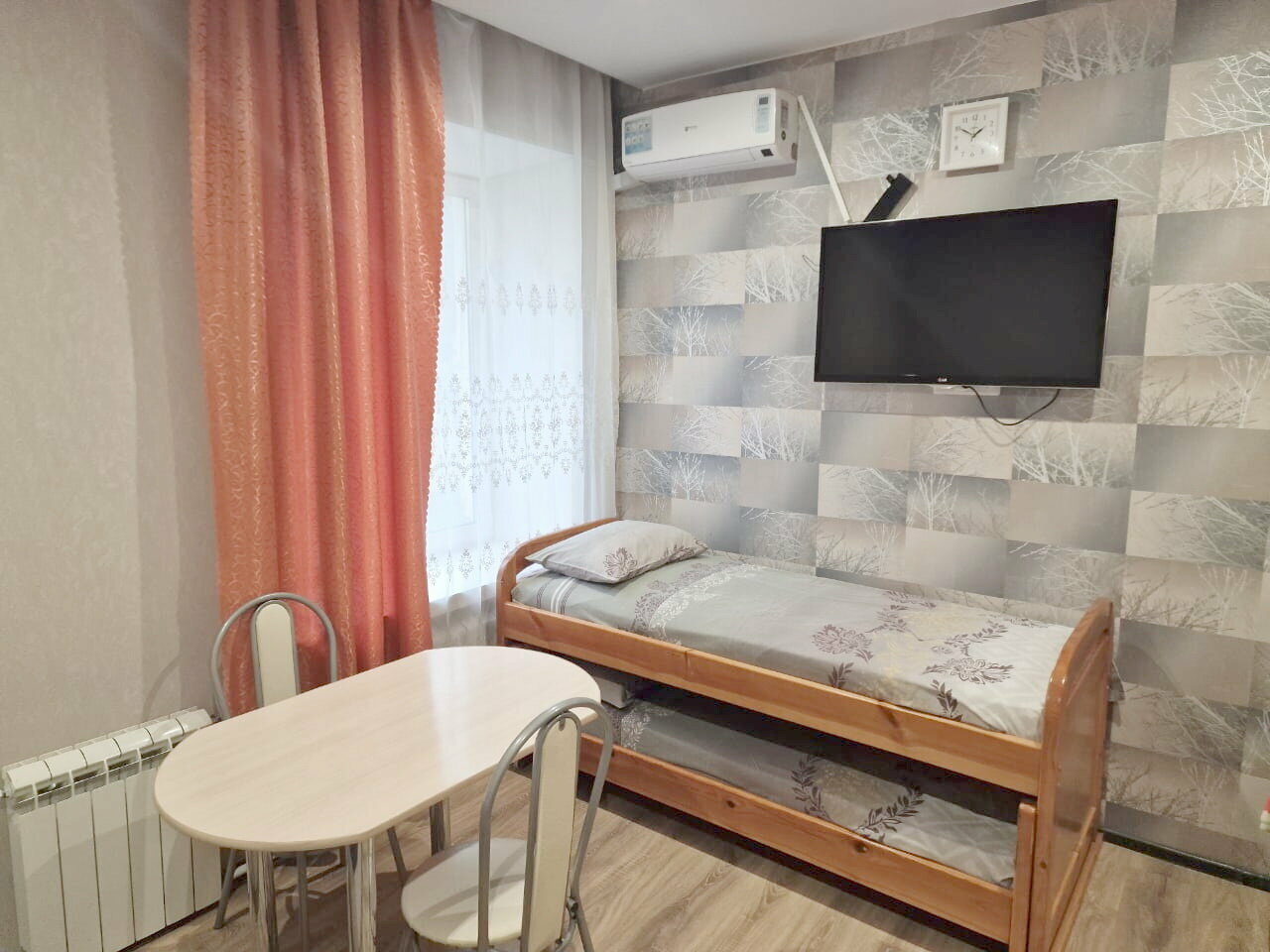 Светлый номер со свежим ремонтом со своей ванной. В номере большой телевизор, кондиционер. Предоставляются средства гигиены. Всегда свежее постельное белье и полотенца.