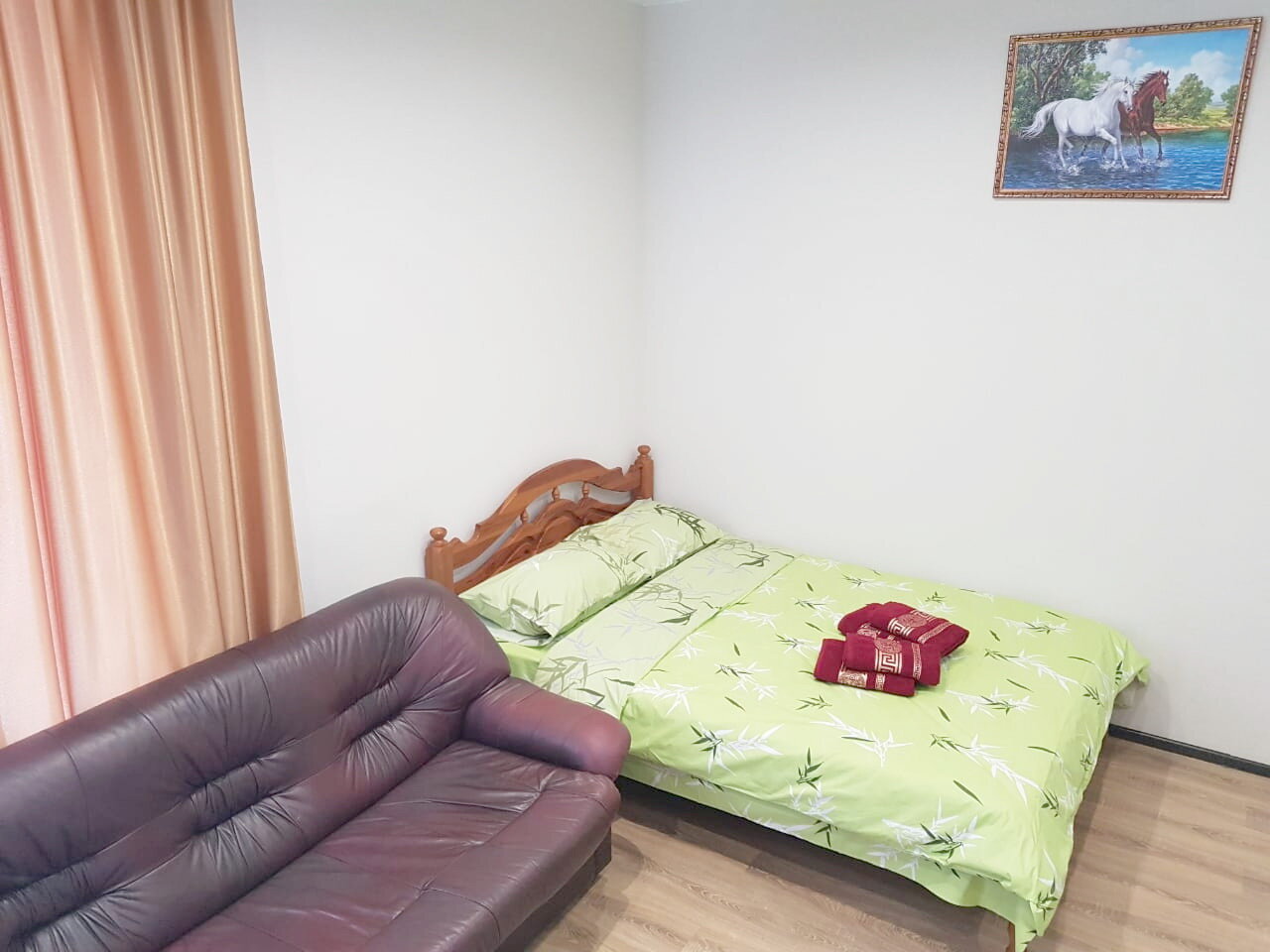 Большой светлый номер со своей кухней и ванной. В номере большой телевизор, кондиционер. Предоставляются средства гигиены. Всегда свежее постельное белье и полотенца.