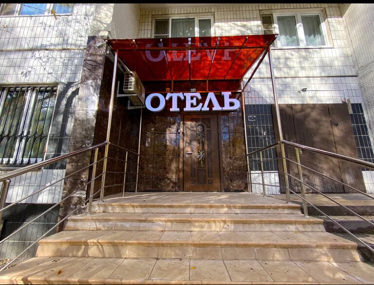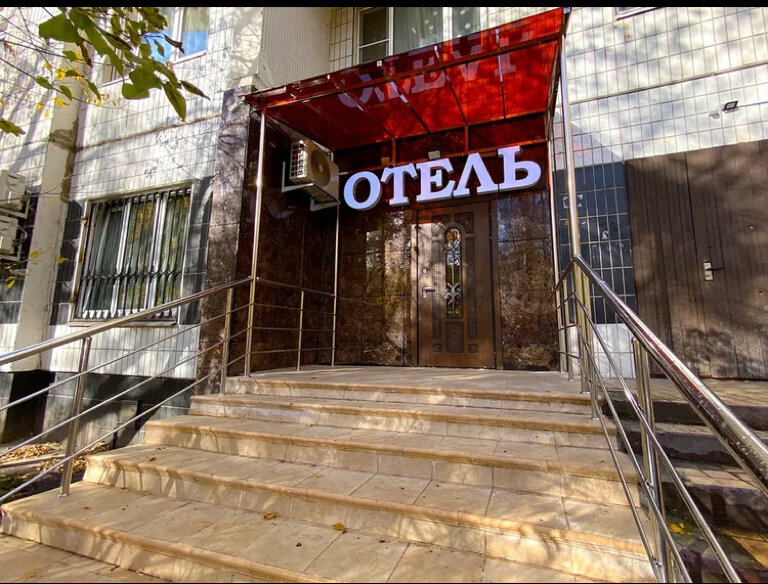 Вывеска ок все остальное ужасное . Отель работает не так давно , но внутри ремонтом и свежестью даже и не пахнет . При заселении взяли залог в тысячу с учетом того что цена за номер 3500 где ничего нет. Ну и на последок там бегают тараканы пауки .