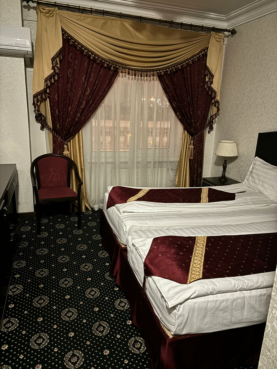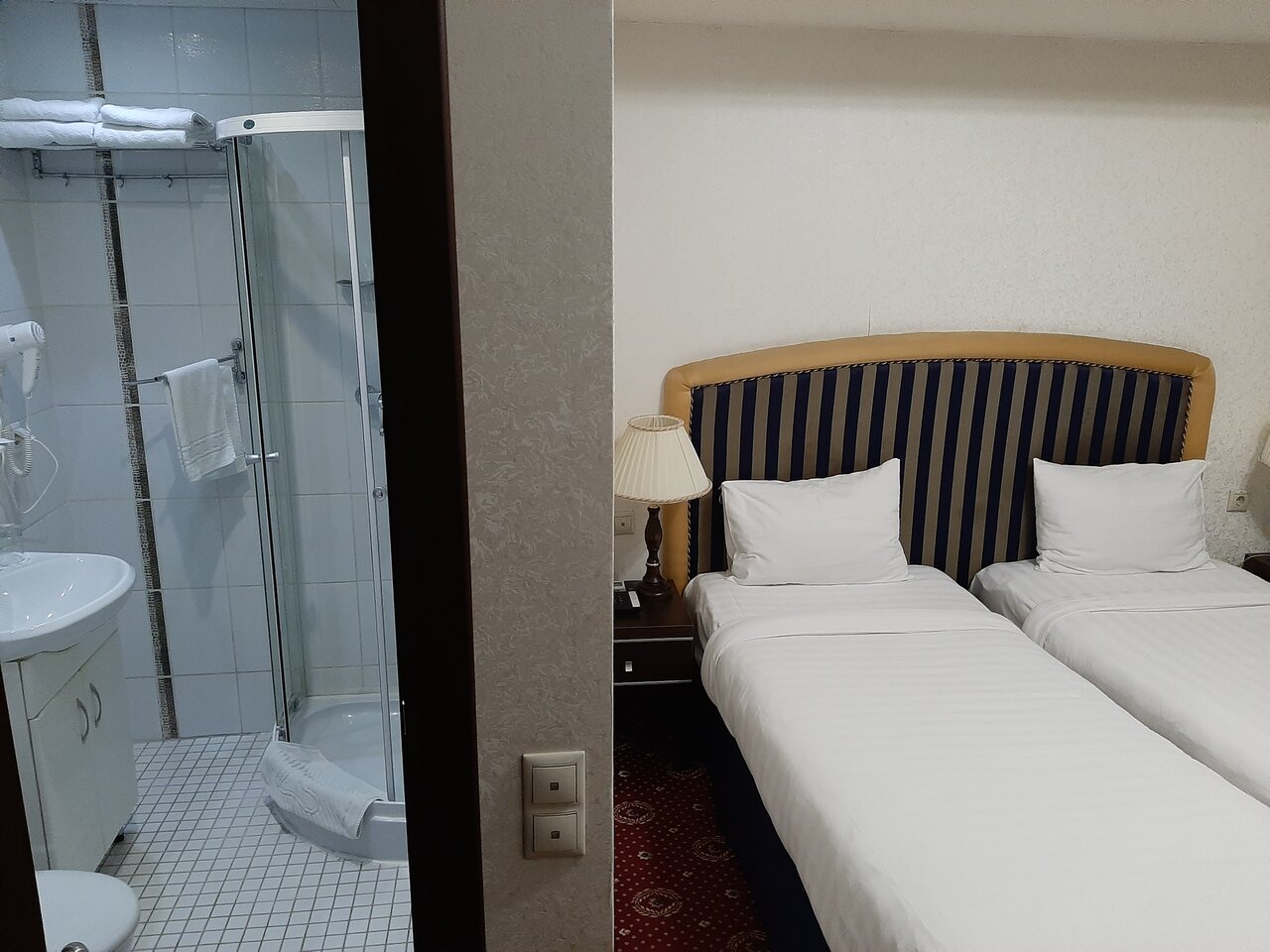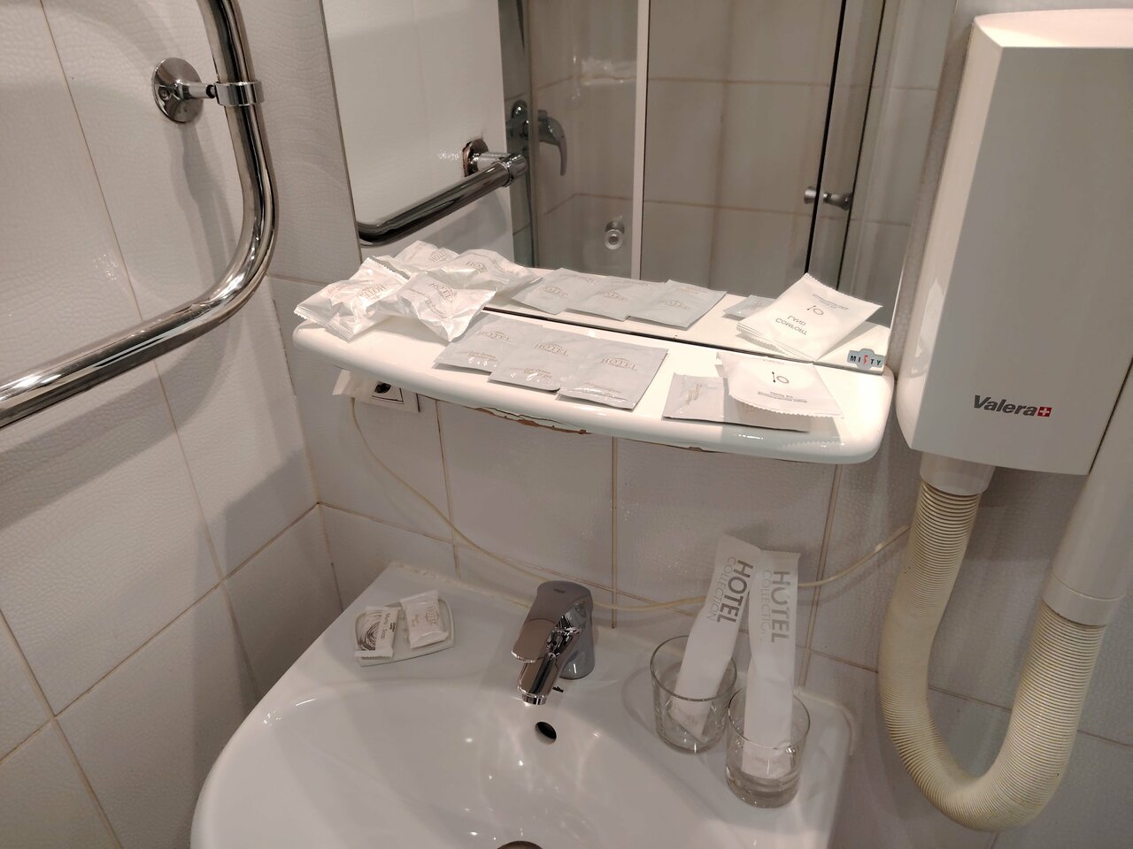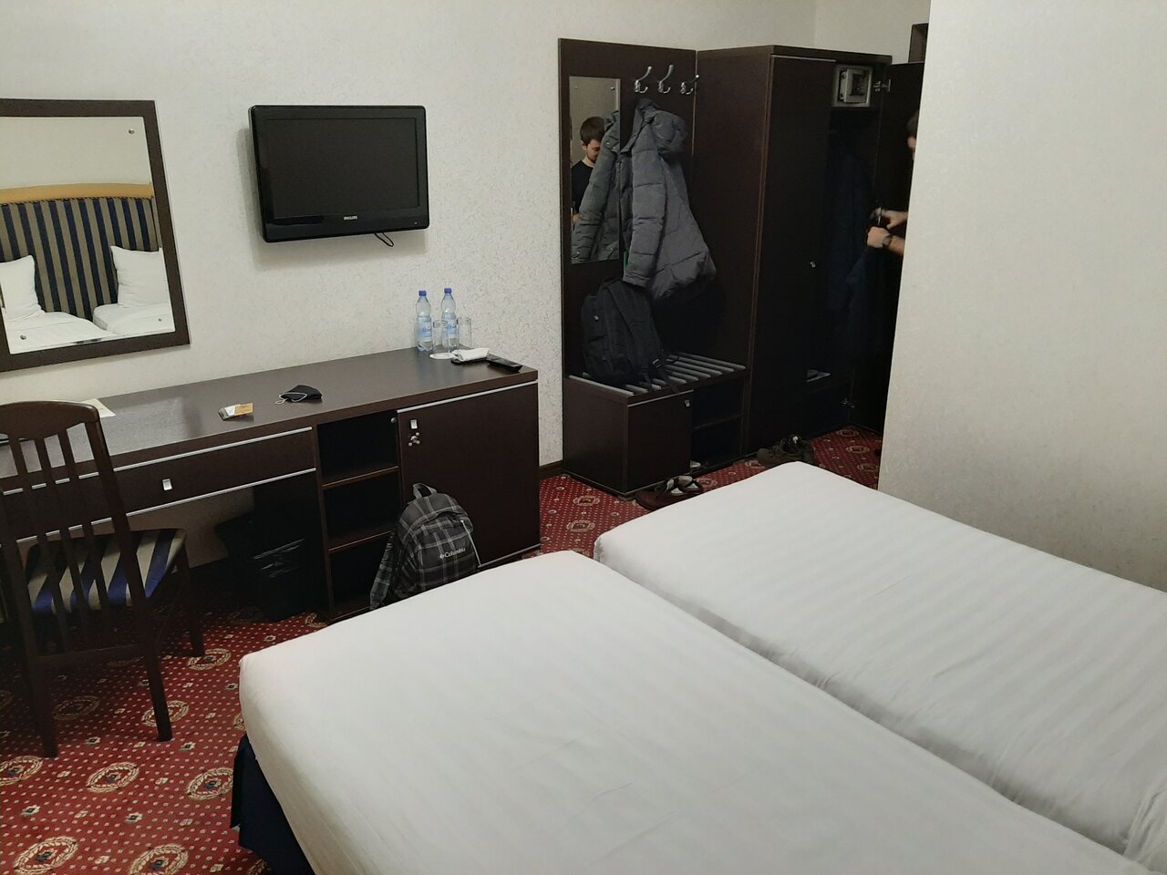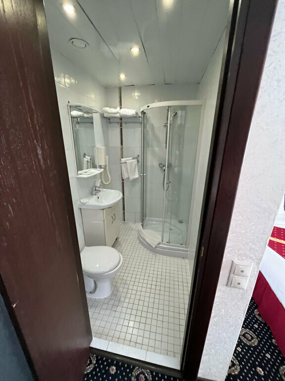 Не 4-ка, но соотношение цена/качество отличное. Чисто. Номер небольшой, но вполне комфортный. В санузле душевая кабина. Шампунь, мыло, шапочка для душа. Кровати не супер удобные, но и не ушатанные. Для недолгой остановки вполне приемлемый вариант.