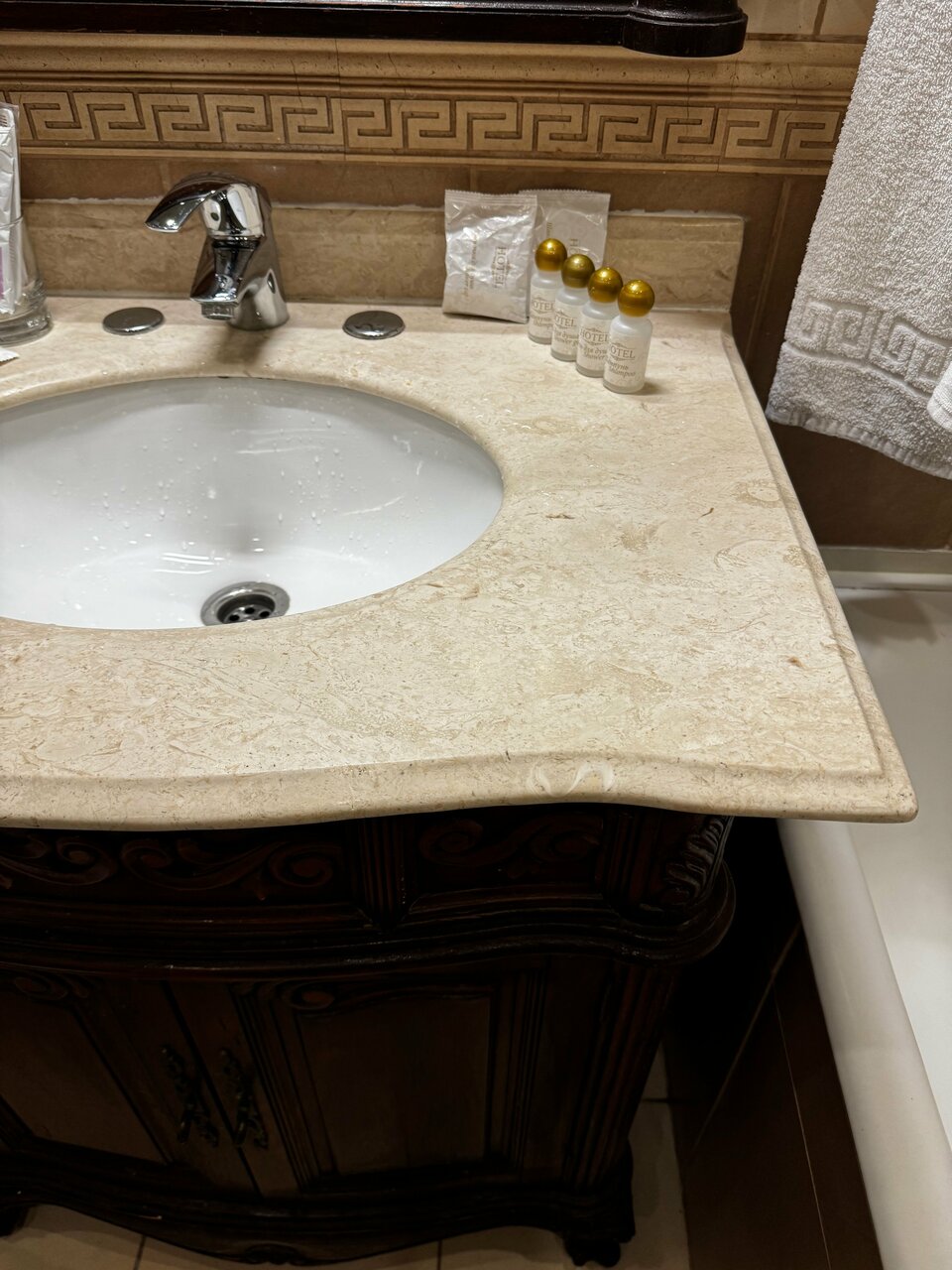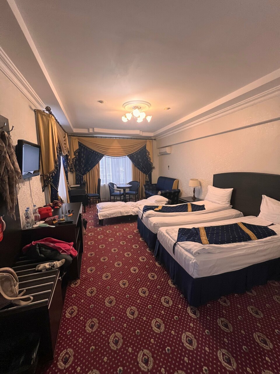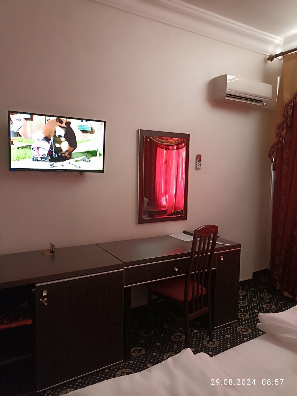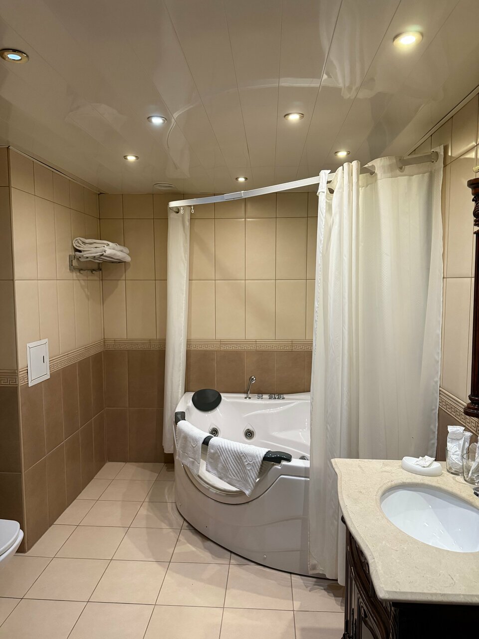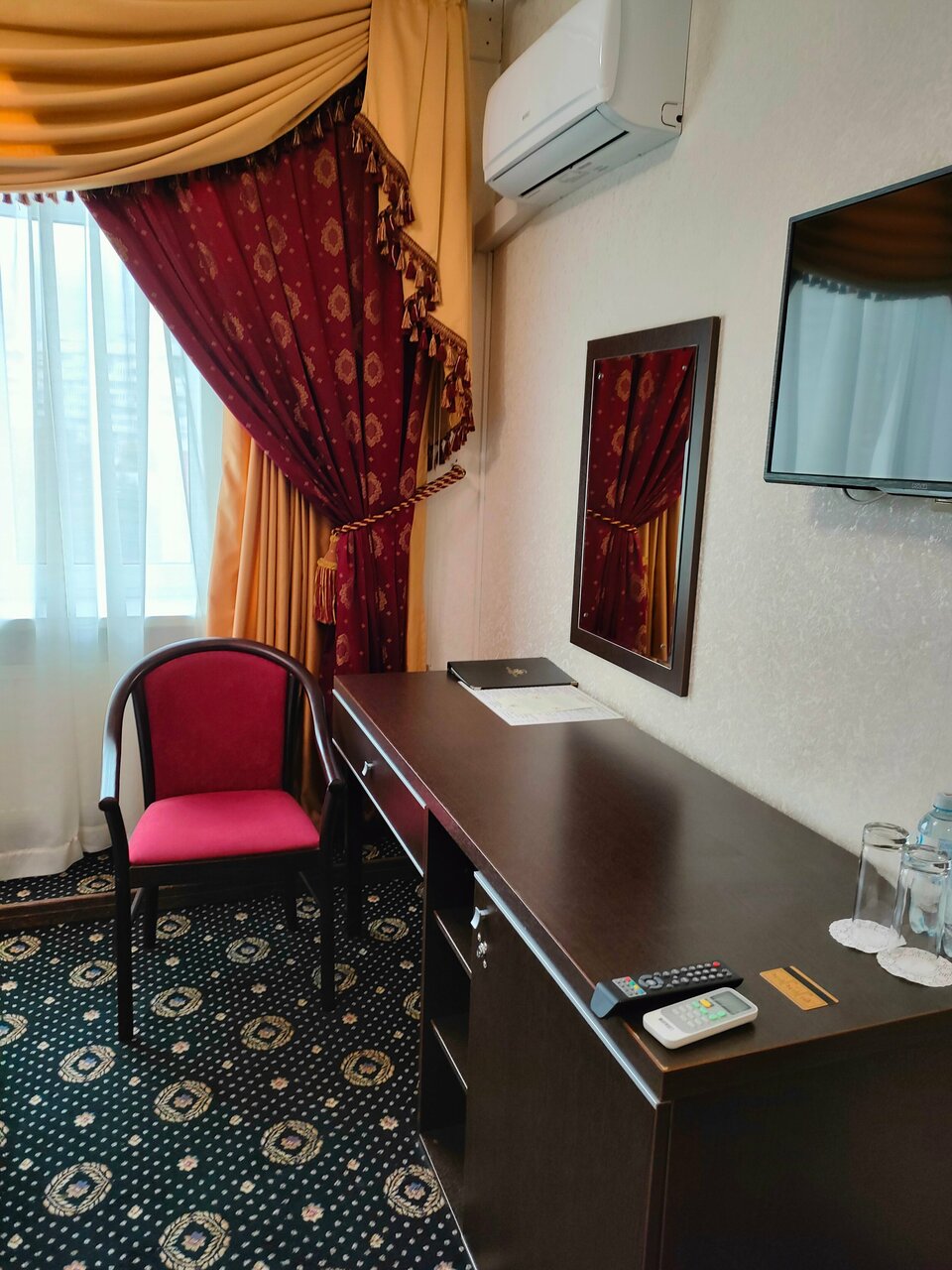 Лампа над зеркалом в ванной включается какой-то страшной верёвочкой, будто в комуналке или студенческой общаге. Но худшее, что было- это комары! Не спали всю ночь, они летели непонятно откуда. Может, из вентиляции или из сплит системы. Антикомарина в номере не было. По итогу не выспались, так ещё и в укусах все и с плохим настроением!