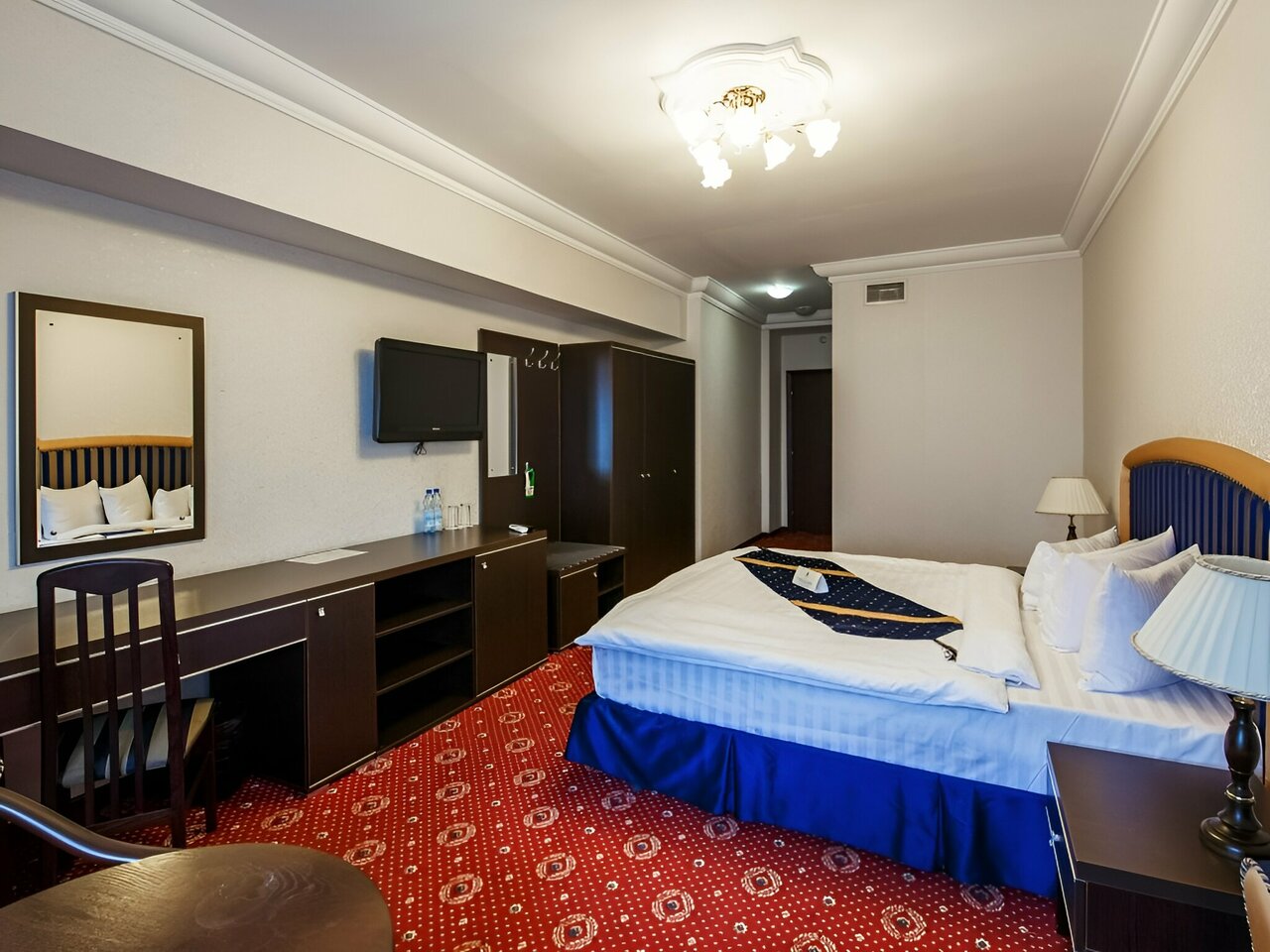 Проживали в данной гостинице три дня. Уже на стойке регистрации выяснилось, что заявленная на сайте сауна и бассейн не работают. В номерах грязно, в ванной комнате плесень. Крошечная душевая кабинка. Один из сотрудников отравился в столовой в первый же день пребывания. В общем из плюсов могу назвать только трансфер от гостиницы до выставки.