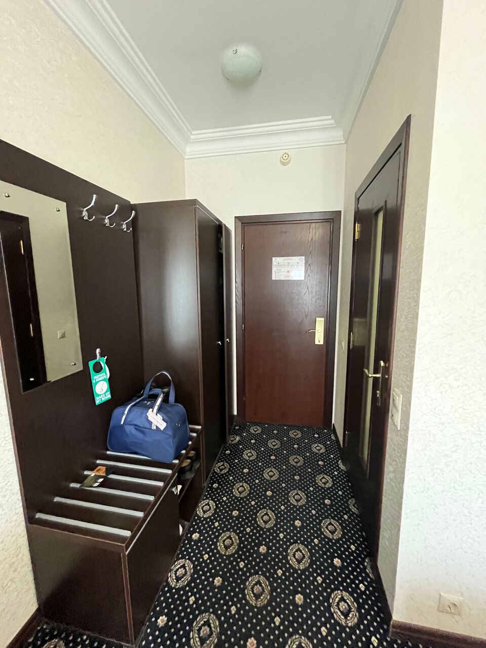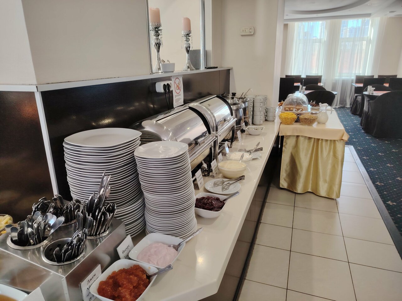 Отель понравился, близкое расположение к метро (7-8 минут), рядом есть продуктовые магазины Магнит, Пятерочка. В номерах чисто, кровати очень удобные. Шведский стол на завтрак — супер, есть сыры, колбасы, сырники, блинчики, две каши, овощи.