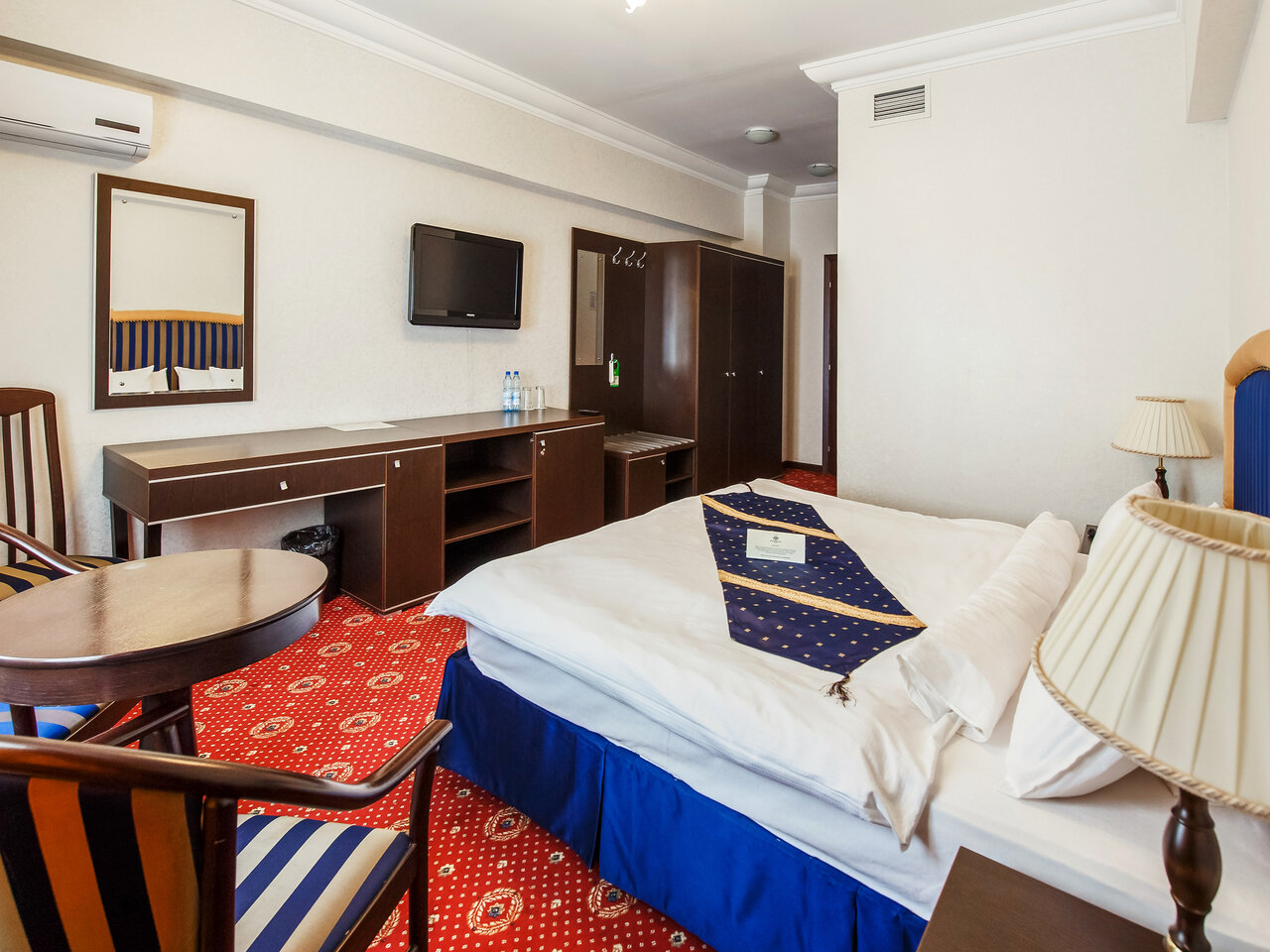 Отель подходит для деловых поездок и отдыха: есть ускоренная регистрация, камера хранения, а также детские кроватки и меню.