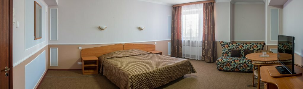 Жили в этой гостинице в период командировки. Удовлетворены вполне. Номера просторные, чисто светло, тепло, хорошее белье, удобные матрасы. Брали полный пансион, завтраки — шведский стол. Обед и ужин — согласно меню. Неплохой кофе. Несколько скоростных лифтов. В номерах холодильники, но чайника нет, да и незачем при наличии кулера на каждом этаже. Территория ухожена, гортензии, розы)) рекомендую!