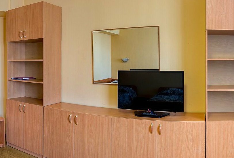 - Чистота и свежесть в номерах.; Скоростные лифты.; Наличие кафе внизу.; Комплексные обеды, завтраки, ужины.; Приятная атмосфера (советский стиль, но уютно).