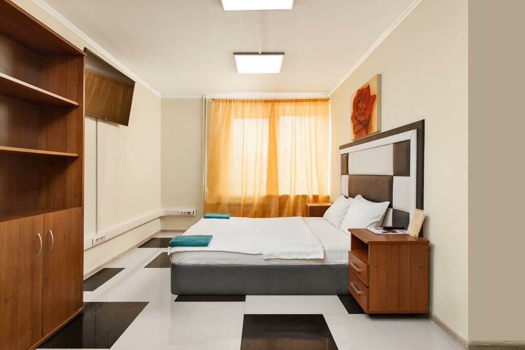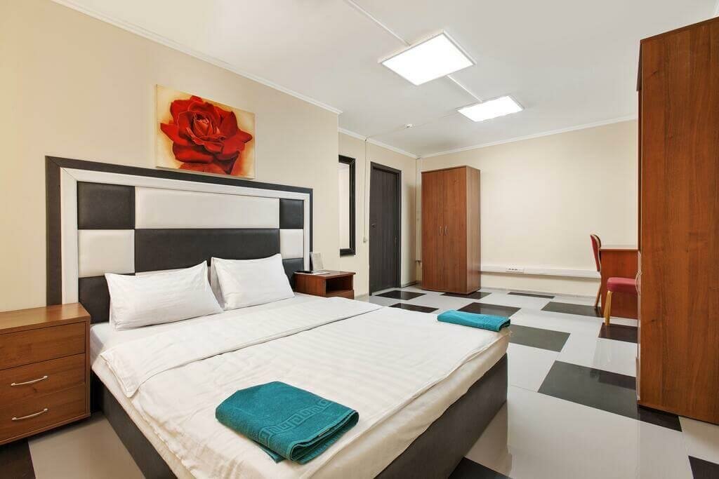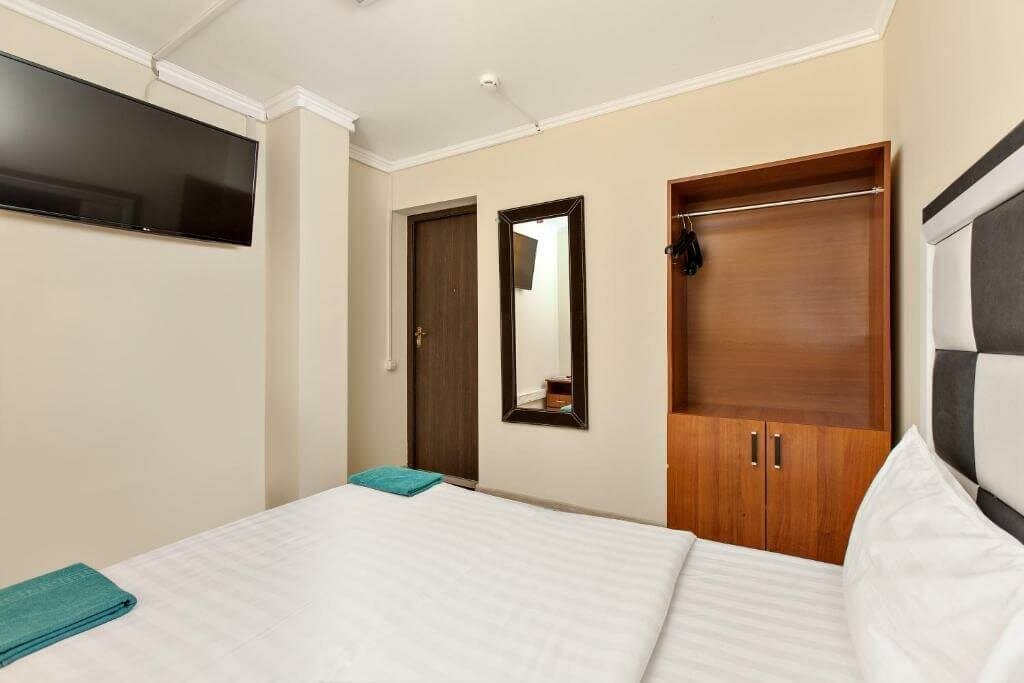 На троечку с большой натяжкой. Переночевать можно, но больше сюда никогда не вернусь. Причин много: Во-первых, полное отсутствие вентиляции как таковой. На весь номер вентиляция только в ванной. Кондиционера нет — вместо него стоит маленький вентилятор, который просто не справляется. В жаркую погоду в номере просто невозможно находится. Во-вторых, кровати в принципе нет, матрас лежит просто на полу. Плюсом ко всему он в отвратительном состоянии — весь рваный, пружины торчат спать было невозможно просто, а спина болит до сих пор. В-третьих, номер без окна оказался с окном в СПОРТЗАЛ, которое просто заклеено пленкой и с другой стороны прикрыто решетками. В-четвертых, нет питьевой воды, нет куллера, ничего — только за отдельную плату из холодильника. Так что если вам станет плохо из-за невыносимой духоты и жары в номере — будьте добры ещё доплатить за водичку.
