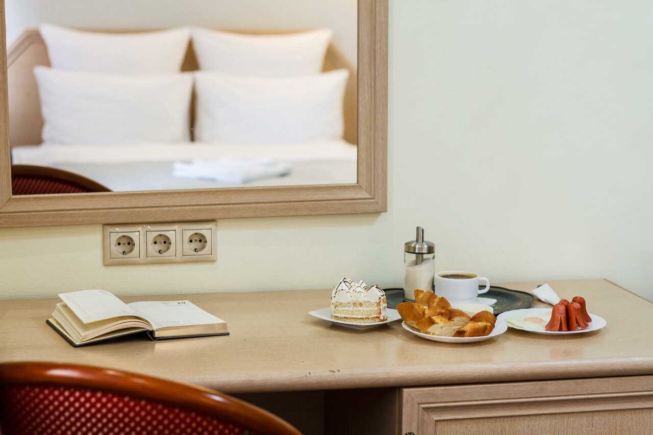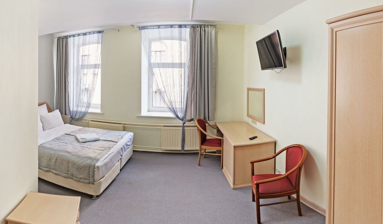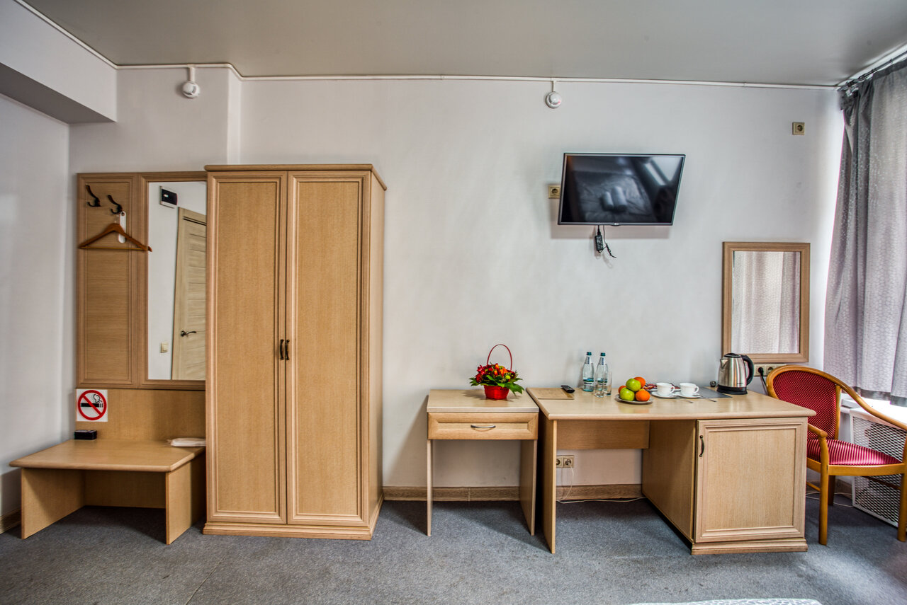 Уютный мебелированный номер со всеми удобствами. Спальные места – в соответствии с Вашими пожеланиями: двуспальная кровать или две односпальные кровати. Также возможна установка дополнительной раскладушки. Стойка регистрации работает с 06.00 до 22...