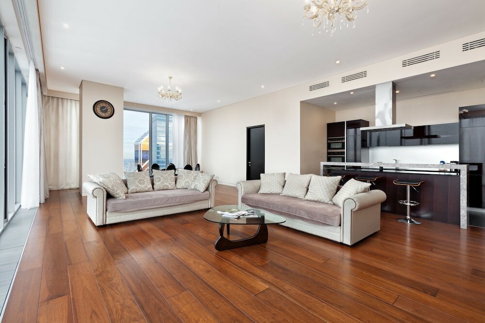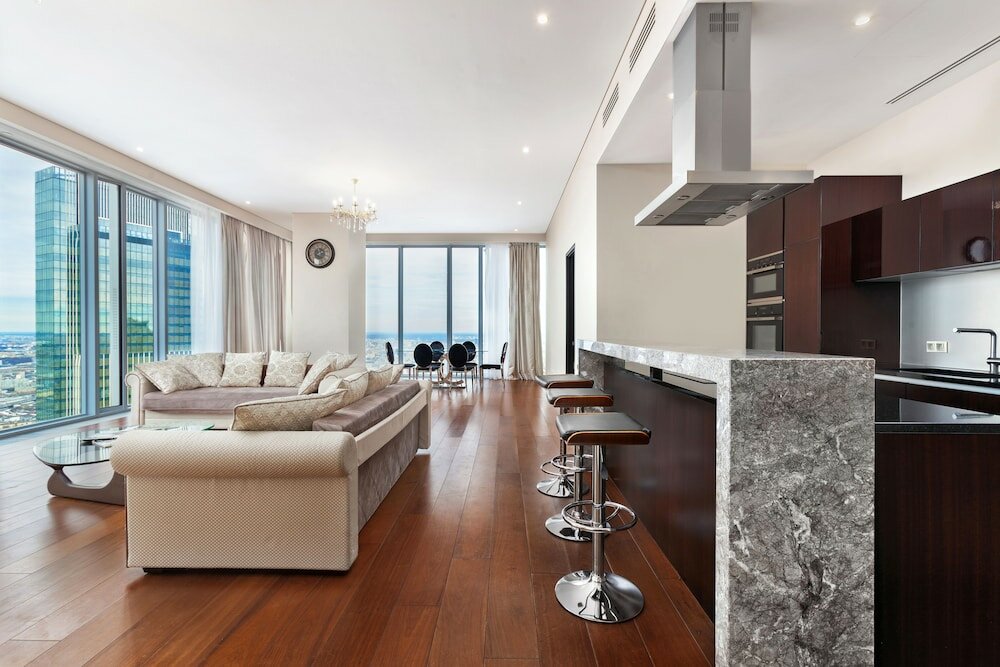 Останавливались здесь на 5 ночей. Так получилось, что номер, который мы хотели — был свободен не на все время заезда, поэтому нам предложили на недостающий период другой, но в этой же башне. Сначала переживали, что придётся столкнуться с переселением — тк выезд по правилам в 12,а заселение только в 15, но ребята работают очень профессионально — они предупредили, во сколько будет переезд и по факту в оговорённое время мы просто перенесли свои вещи в другой номер. Номера хорошие, чистые, с дизайнерским ремонтом, укомплектованные техникой премиум-класса. Отдельно хочется отметить хорошую работу службу поддержки клиентов, и лично поблагодарить администратора Дарью за помощь в решении огромного количества вопросов, не знаю, что бы мы без неё делали Если будете останавливаться в Москва-Сити и хотите, чтобы ваше пребывание прошло безупречно и все вопросы решались без потери вашего личного времени-крайне рекомендую останавливаться здесь.