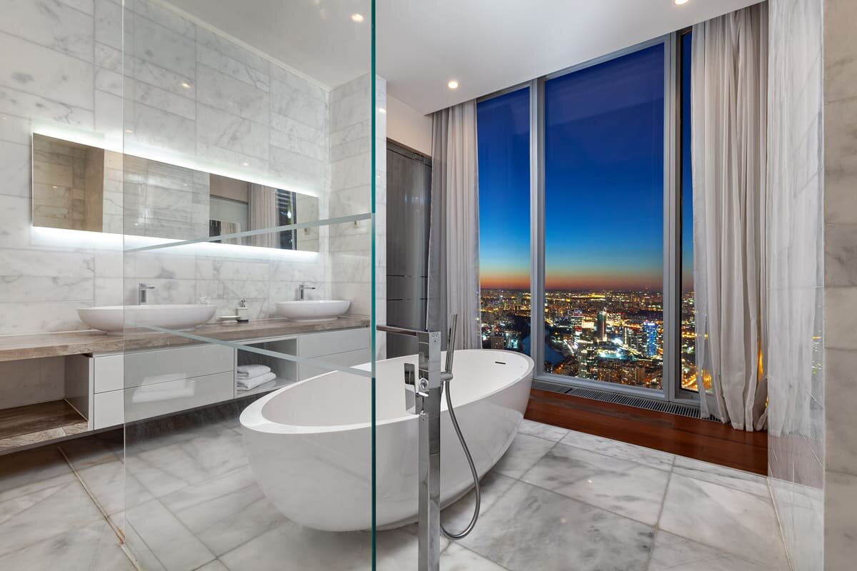Арендовали апартамент в башне ‘ОКО’ Polaris 3, 45 кв.м. на 74 этаже с панорамной ванной, с видом на реку и городскую панораму. Ставлю пять звёзд за полученные эмоции от крутого вида из окна! Именно для этого и арендовали апартаменты. Есть мелочи и недочёты к которым можно придраться, но я не буду этого делать. Утром можно покайфовать с чашечкой кофе глядя в окно, а вечером с бакальчиком шампанского и это очень круто! Кому нужен безупречный сервис, бронируйте пятизвёздочный номер в гостинице, кому нужны эмоции от высоты птичьего полёта, вам сюда. Вобщем рекомендую, проверил лично, супруга тоже в восторге, не жалко ни одного потраченного рубля.