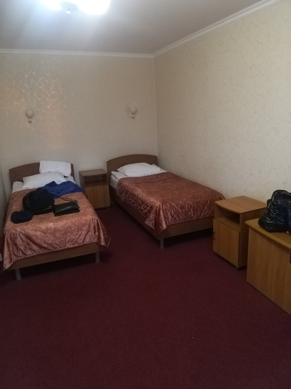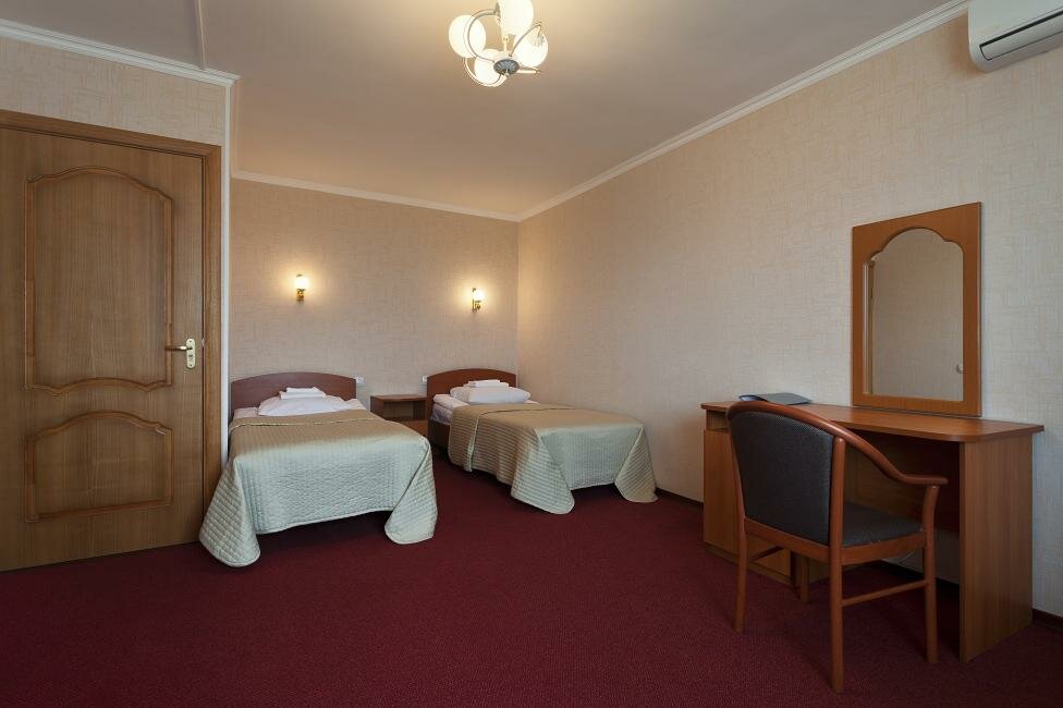 Номера в советском стиле. Из плюсов : - Не дорогие номера - Всегда есть свободные номера - Вкусно готовят в ресторане при отеле - Есть парковка для авто Из минусов: - Номера в советском стиле - Можно встретить тараканов