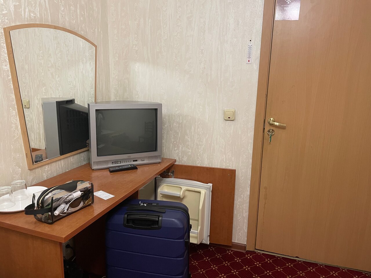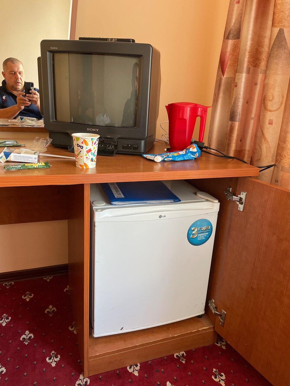 Отель хороший, в шаговой доступности от метро и магазинов. В номерах чисто и уютно. Персонал вежливый. Слышимость хорошая. При заселении сказали есть холодильник в номере, обнаружила маленький в тумбе под телевизором, смешно было.