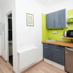 Апартаменты находятся в 20 минутах ходьбы от станции метро Кунцевская. В самом помещении есть все для комфортного проживания. Большая кровать, зеркало, шкаф, душ с полотенцами и гелем для душа, а также холодильник, микроволновка и посуда. Единственное, не хватило половой тряпки и было достаточно пыльно