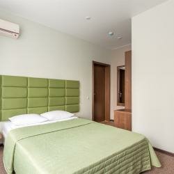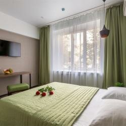 Удобства: — Кондиционер, Wi-Fi, телевизор, холодильник, мини-бар, фен, чай/кофе в номерах. — Гипоаллергенные и звукоизолированные номера с санузлом, есть номера с джакузи. — Бесплатная парковка, общая кухня, микроволновка, плита, посуда, стиральная машина. — Пандус, автоматическая дверь, камера хранения, консьерж-сервис, ускоренная регистрация. — Детская площадка, сад, рядом парк.
