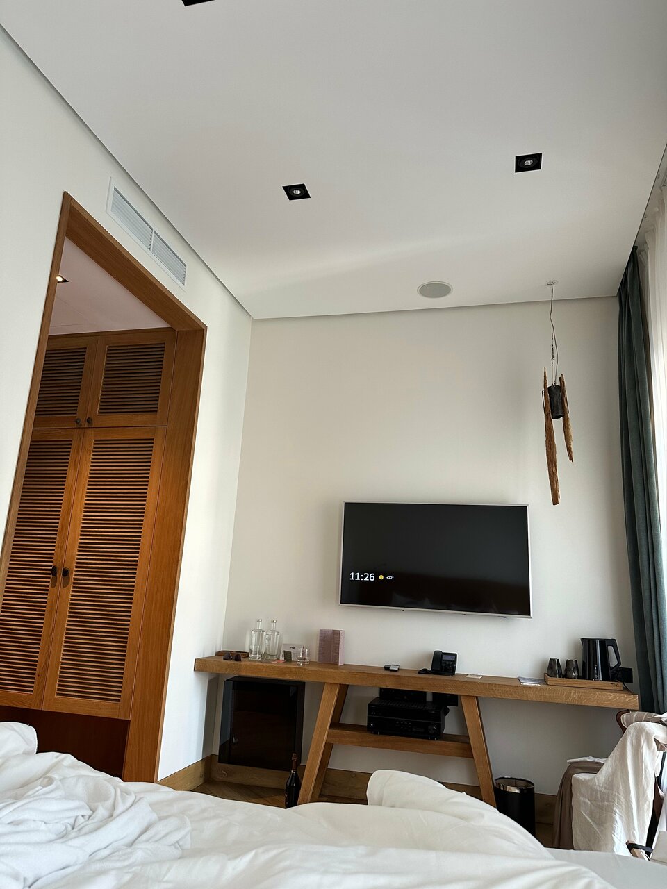 Отель очень понравился, особенно зацепил умный номер, в номере 215 можно управлять шторами, чайником, увлажнителем, теплыми полами и освещением через приложение или голосом.