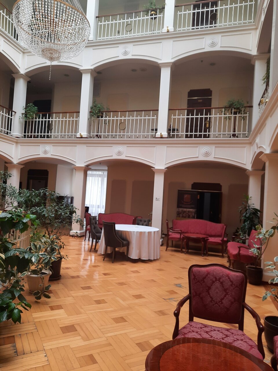 Уютный отель в центре Москвы. При этом тихо. Интерьер под ретро, нет этих стандартных длинных коридоров с дверями. На каждом этаже можно посидеть с ноутбуком, поработать. Завтраки говорят ‘в моменте’, но в целом ничего особенного они не представляют. Очень расстроила водопроводная вода с черным осадком, поданная для чая. В номере стандарт всё стандартно. Прибрано, комфортно, но большой объём накипи в чайнике тоже напрягает. Даже чистую воду из бутылочки превращает в отвратительное варево.