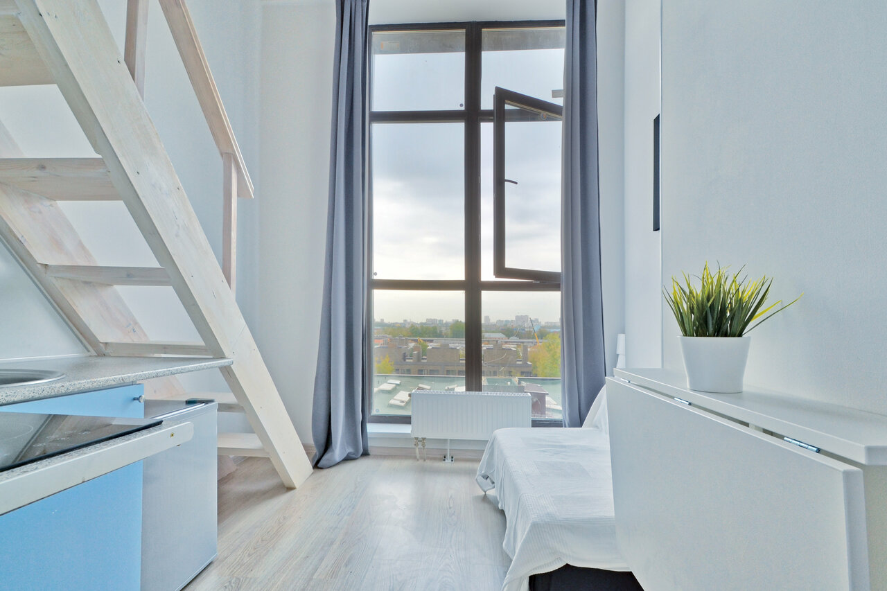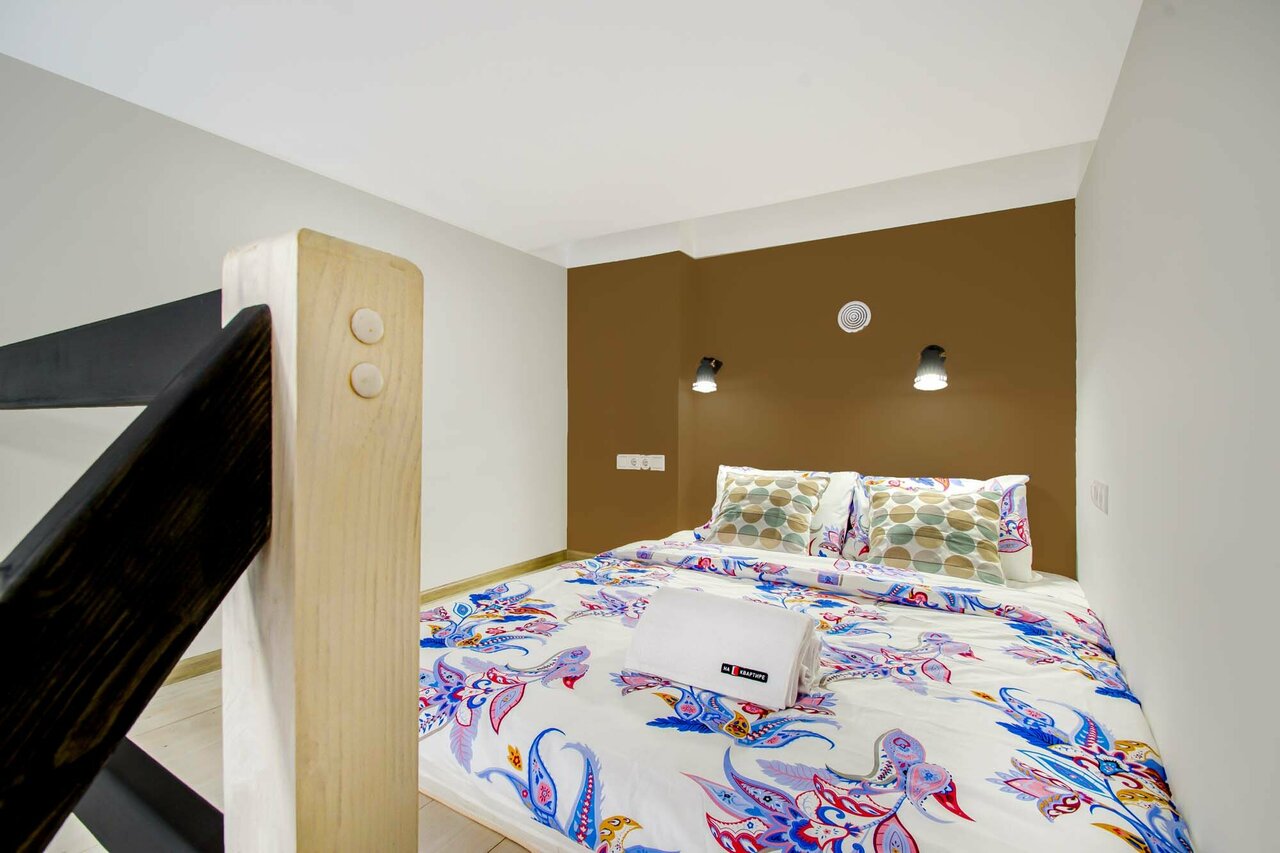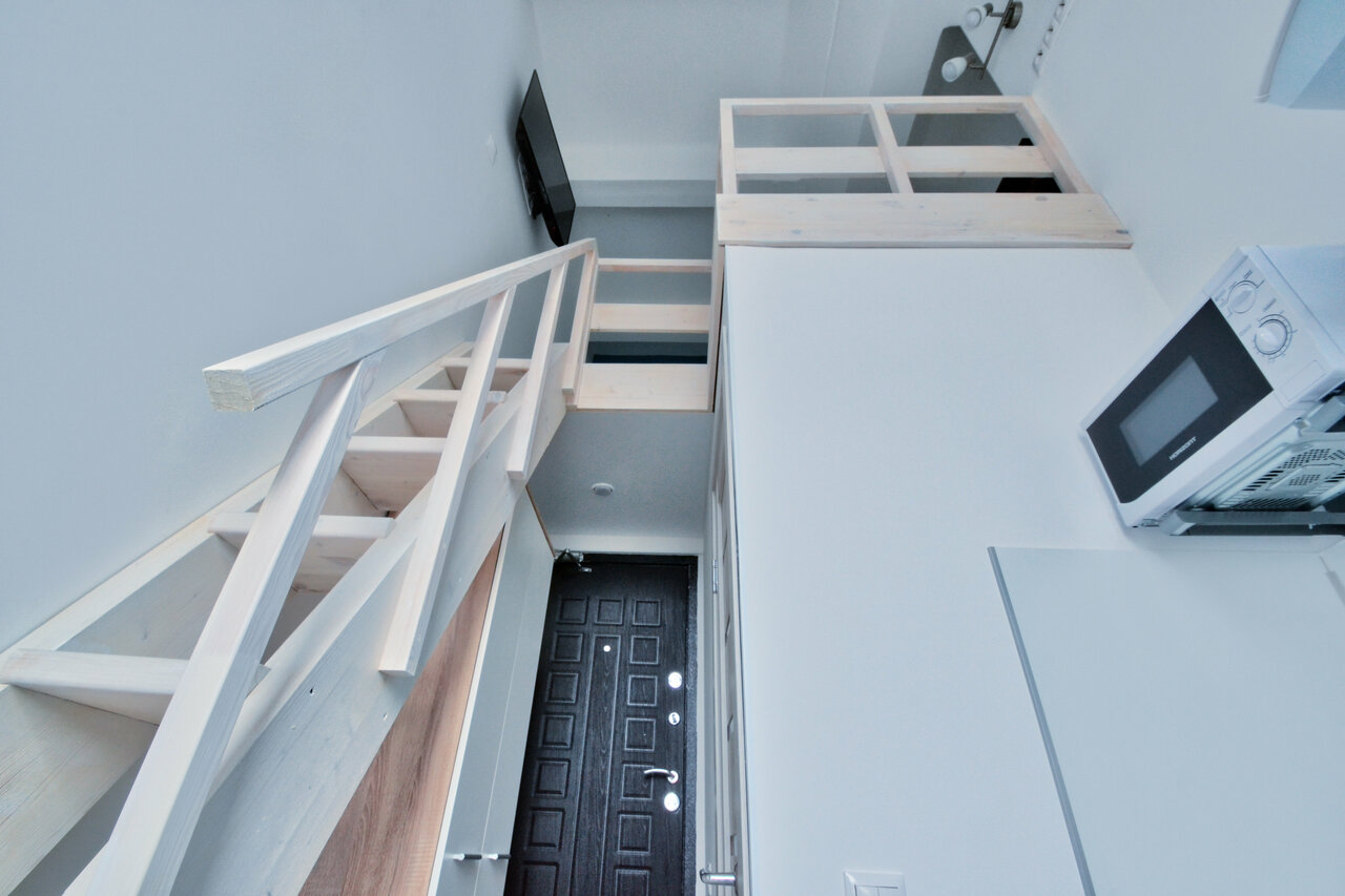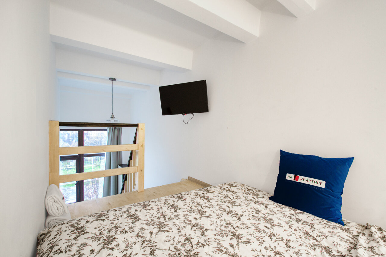 Маленькая студия. На втором уровне кровать. Спать очень душно. А так, не плохо.
