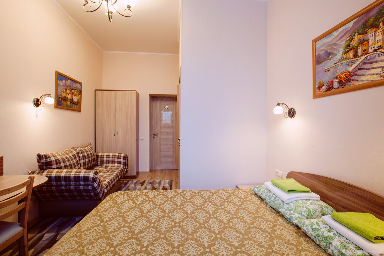 Отличный мини отель. Переделан из коммуналки. Очень тихо. Очень чисто. Кухня просторная, на ней все неоходимое есть. Рядом магазины, аптеки, кафе, метро. До Красной Площади 15 минут. Были зимой и снова едем к вам весной. Номера чистые, ухоженные. Цена просто волшебная! Заселение дистанционное. Очень все удобно!