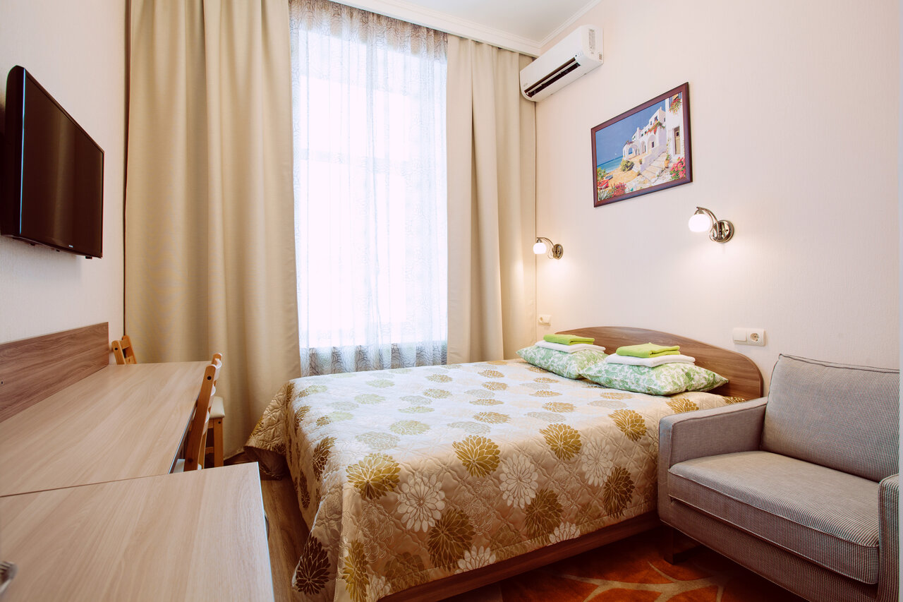 Расположение отеля на 5+. Чисто, есть всё необходимое (кухня, в номере чайник и мини-холодильник), удобные кровати.