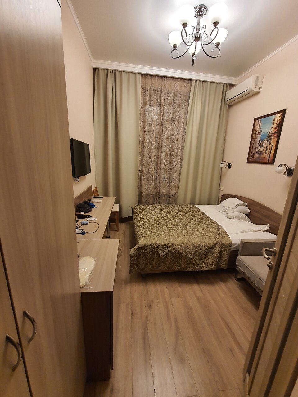Из положительного только расположение, до красной площади минут 15-20 особо не спеша, рядом евроспар и различные кафе. На этом из плюсов + все. Организация общения с гостиницей только в WA или телефонном режиме, при въезде просто оставить вещи можно только если в данный момент в гостинице находится уборщица, получить ключи можно в том же режиме. В номере сыро, при температуре ночью 0гр. отопления не было, кондиционер не работал на тепло. Чистота душевой кабины оставляет желать сильно лучшего, а финальной точкой были три таракана-два в ванной и один в комнате. Но стоит отметить, что после 1-го таракана написали об этом в WA, придя домой вечером увидели ловушку для тараканов, тут же увидели еще двух и съехали. Стоит отметить что гостиница расположена на 3 этаже, лифта нет( Сумму за не прожитые дни вернули, но вычли комиссию Яндекса за наш счет