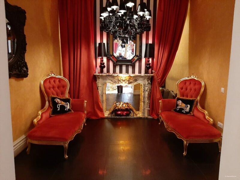 - Странная обстановка (вычурный первый этаж, непонятные помещения на других этажах).