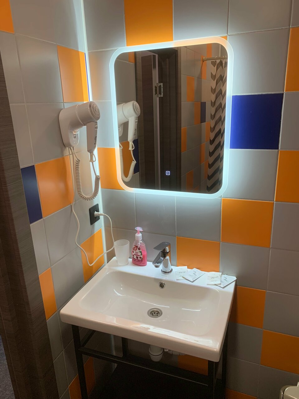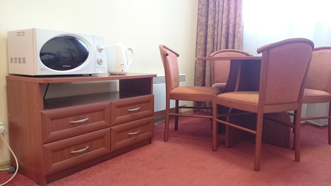 Неплохой отель, в холле есть куллер с водой, чайник, а так же микроволновка. Удобное расположение 2 минуты от метро. Новый ремонт