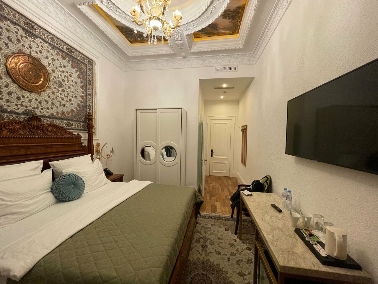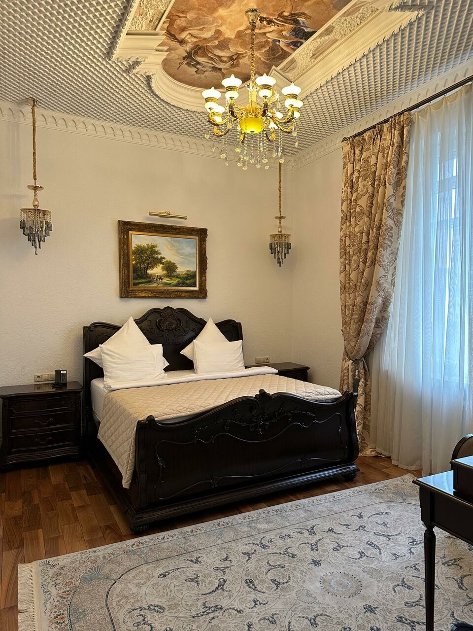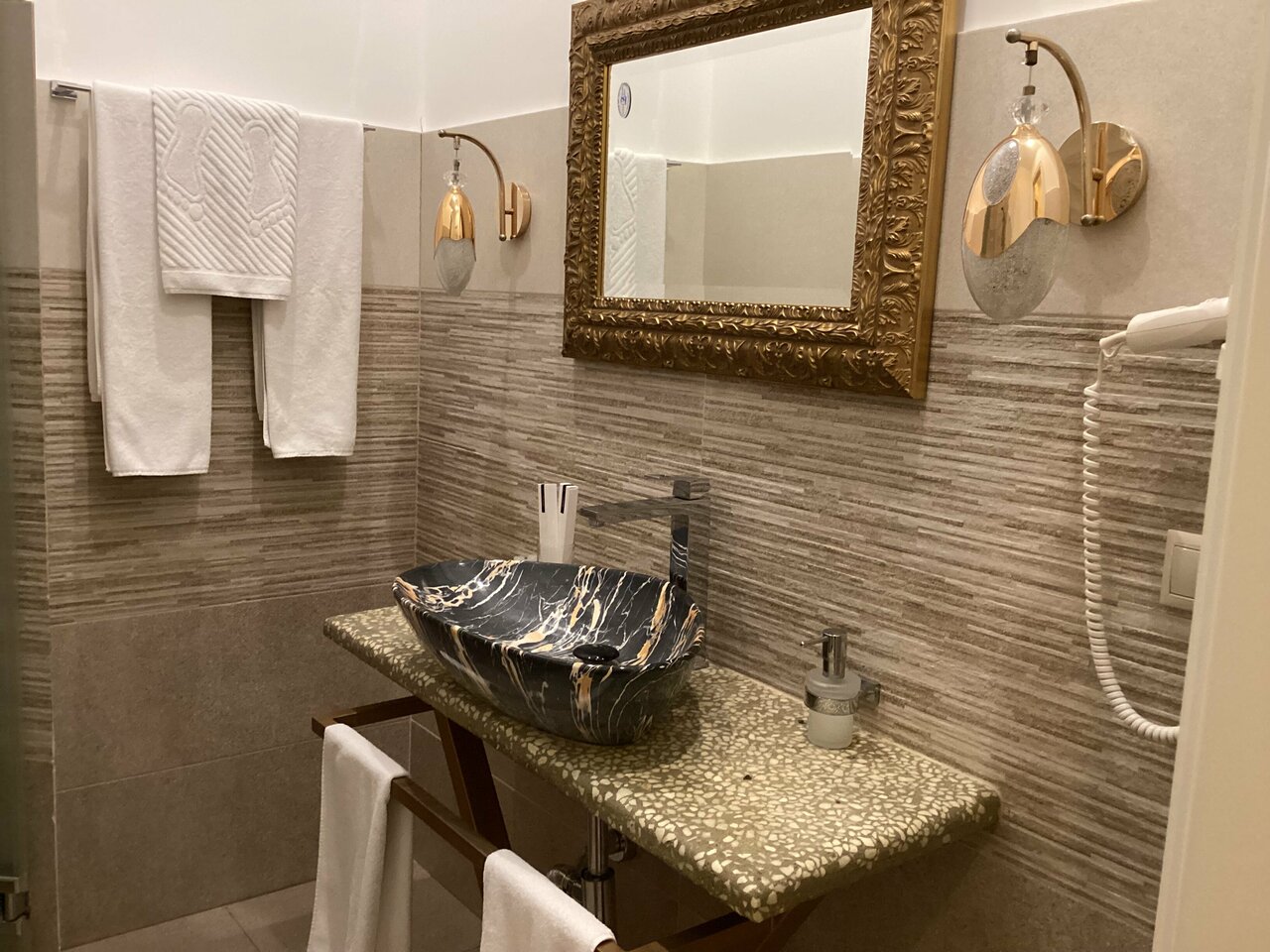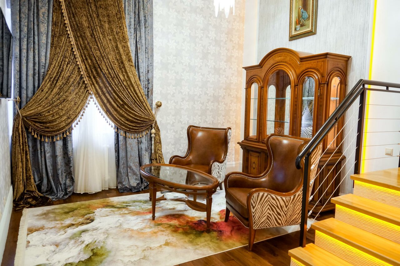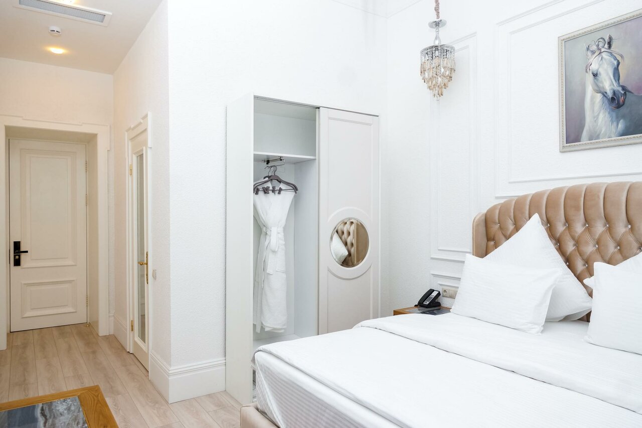 В целом отель хороший. Прекрасное расположение. Жили в люксе. Прекрасная кровать, прекрасное белье. Тихо. Спать очень комфортно. В номере было одно кресло, но когда попросили, принесли ещё одно. Не было губки для ухода за обувью, бумажных салфеток.