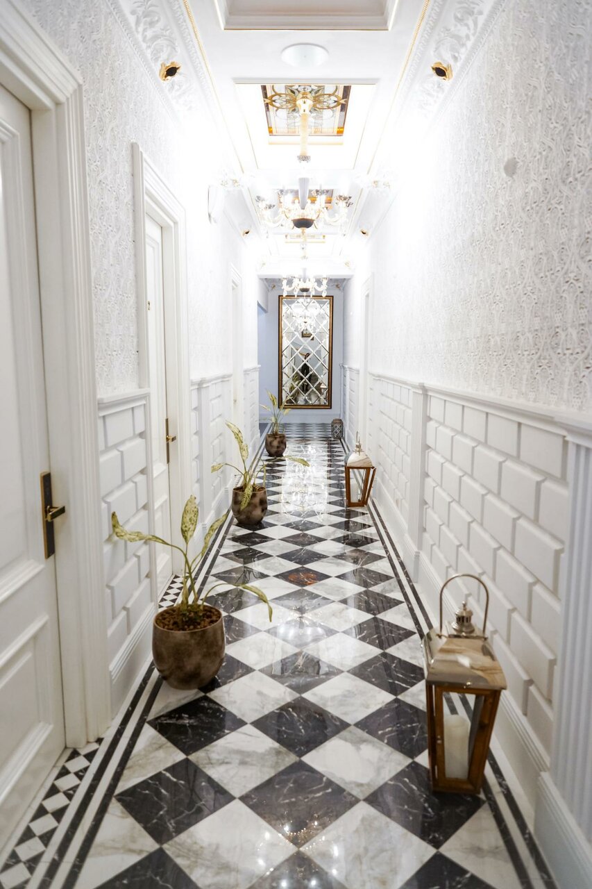 Очень милое местечко! Рядом любимый Арбат, театр Вахтангова — можно гулять с превеликим удовольствием! У отельчика свой характер — с неожиданными открытиями. Например, плиты-картины из камня с подсветкой… Завораживает! Чисто, уютно, бархат и золото в отделке в меру — смотрится роскошно, но без напряжения…